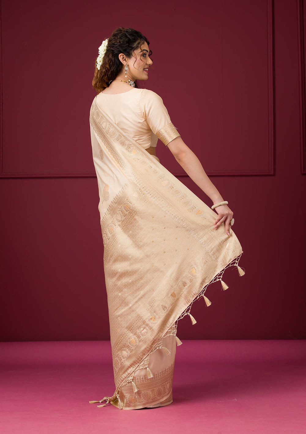 Cream Saree in Art Silk fabric. The Saree is elevated with Zariwork embroidery. It comes with an Unstitched blouse. Comes with the Koskii promise of premium quality.