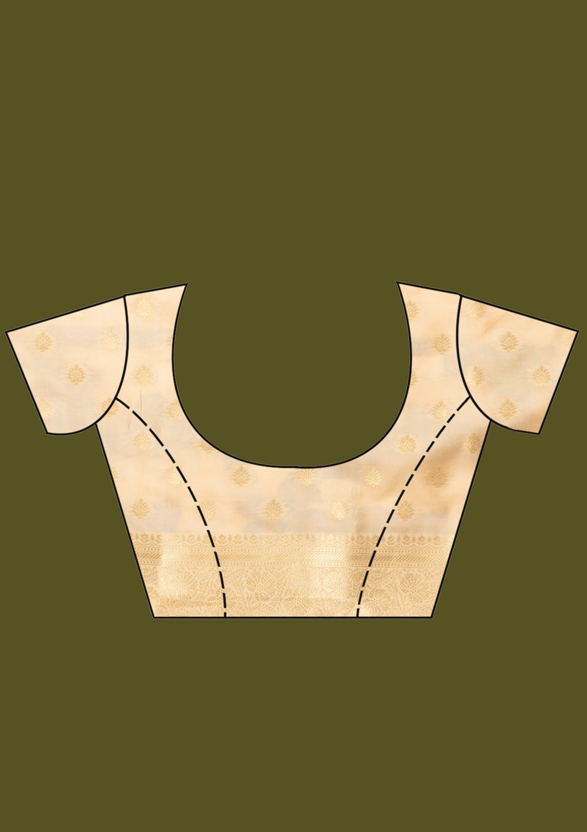 Cream Silk_Saree in Art Silk fabric. The Silk_Saree is elevated with Zariwork (Gold) embroidery. It comes with an Unstitched blouse. Comes with the Koskii promise of premium quality.
