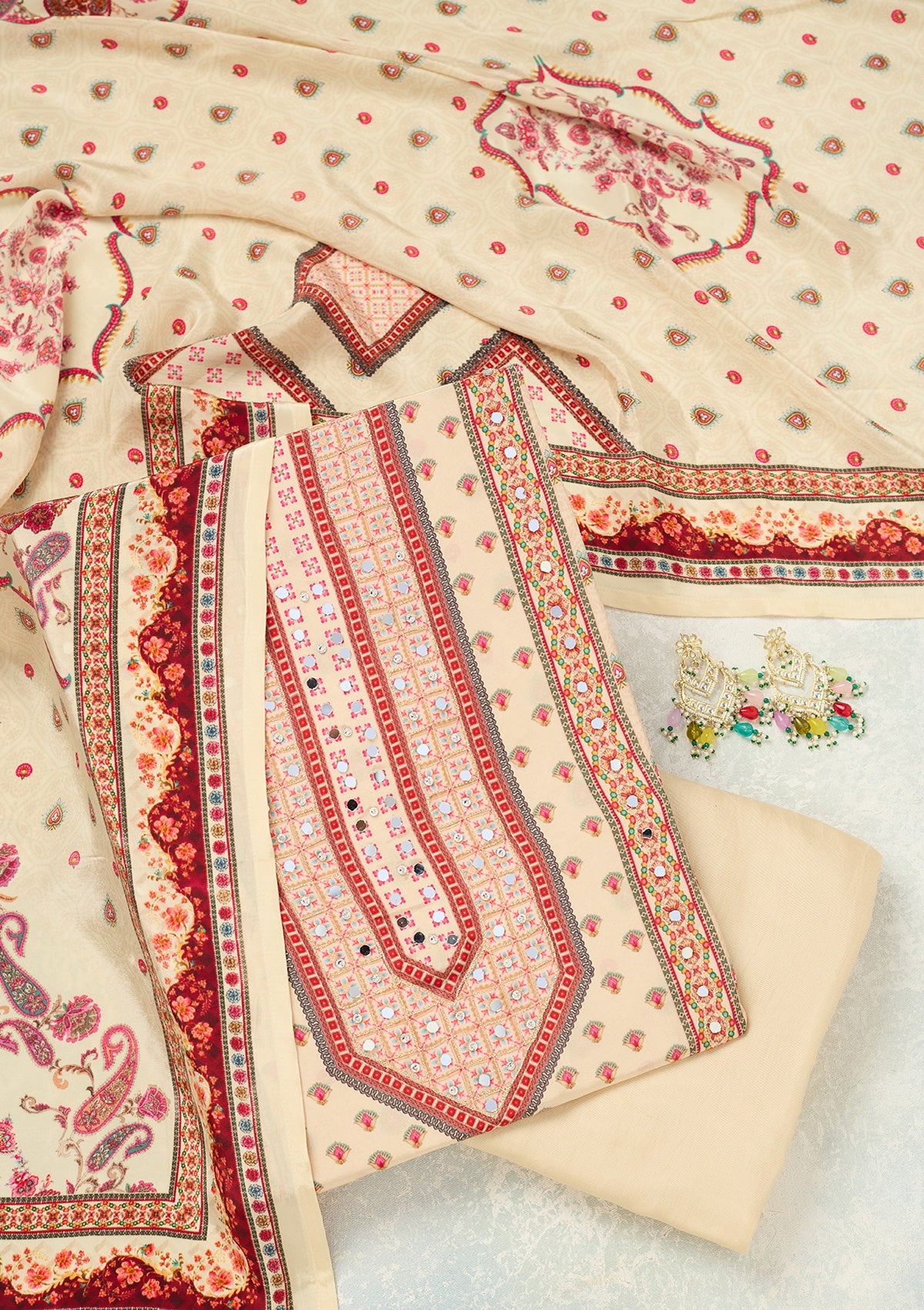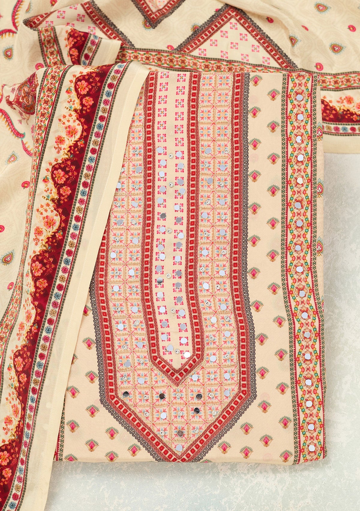 Cream Zariwork (Gold) Crepe Unstitched Salwar Suit