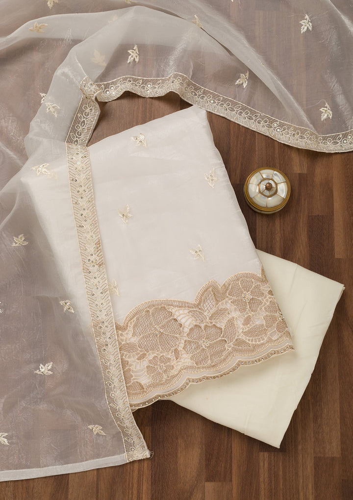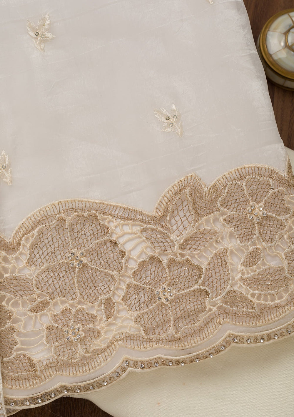 Cream Zariwork Semi Crepe Unstitched Salwar Suit