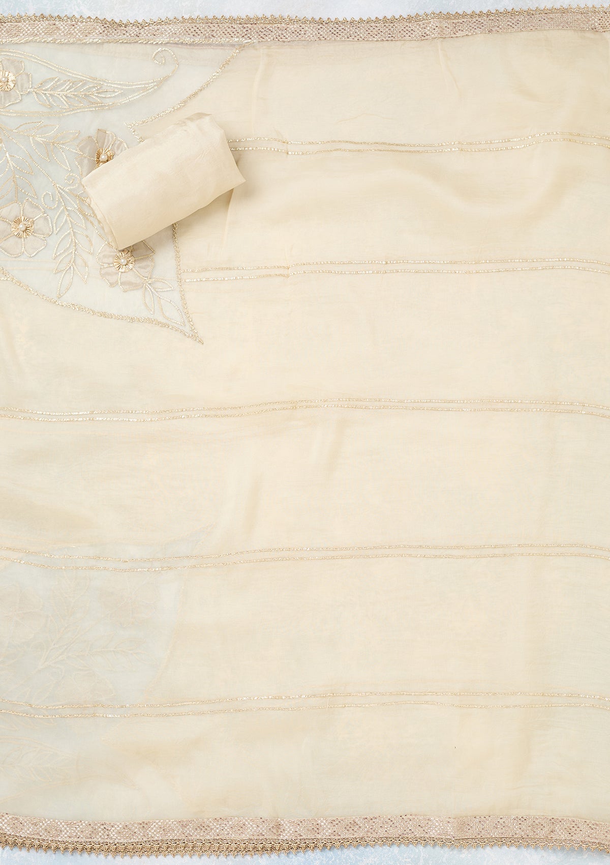 Cream Zariwork Tissue Unstitched Salwar Suit-koskii
