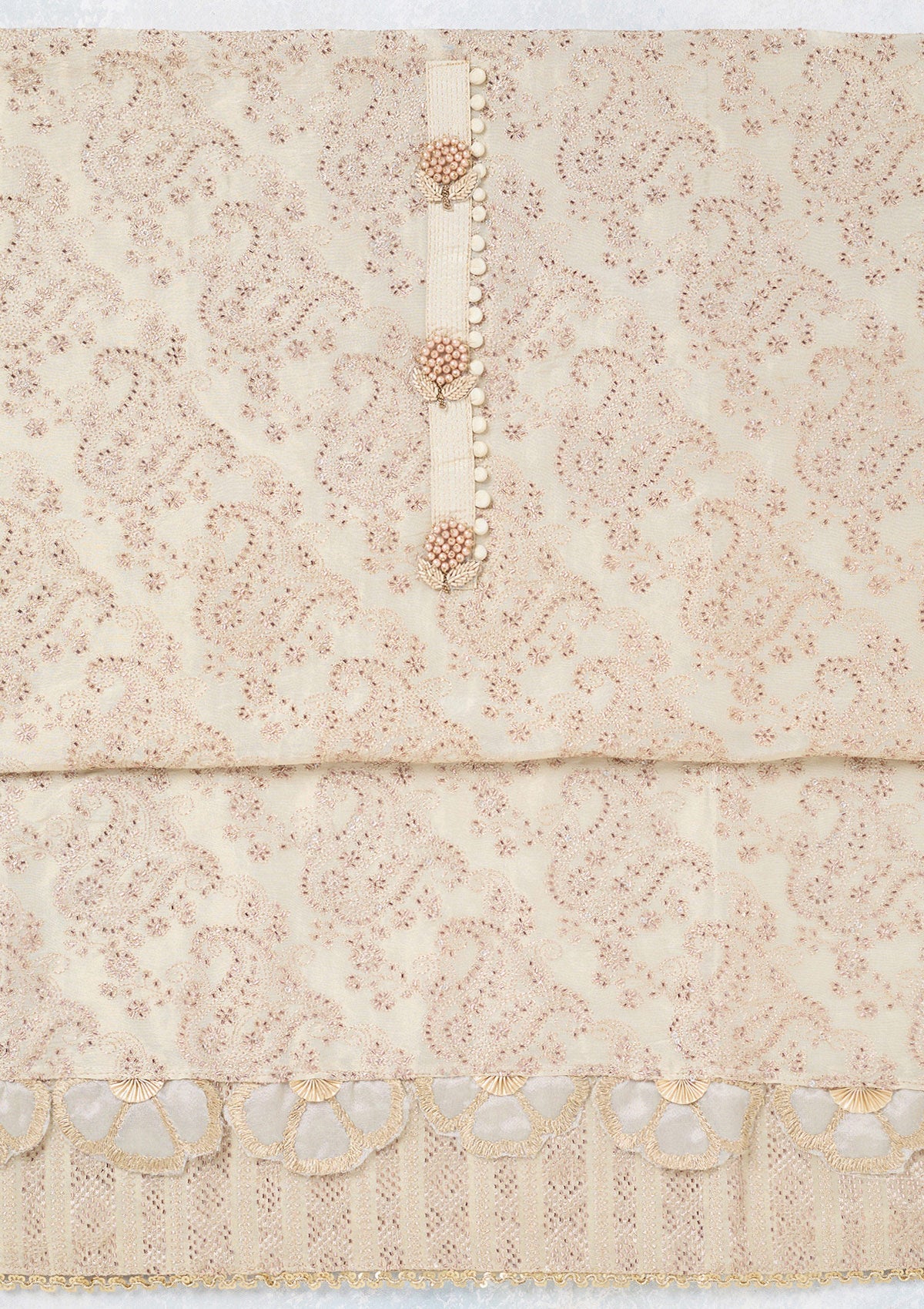 Cream Zariwork Tissue Unstitched Salwar Suit
