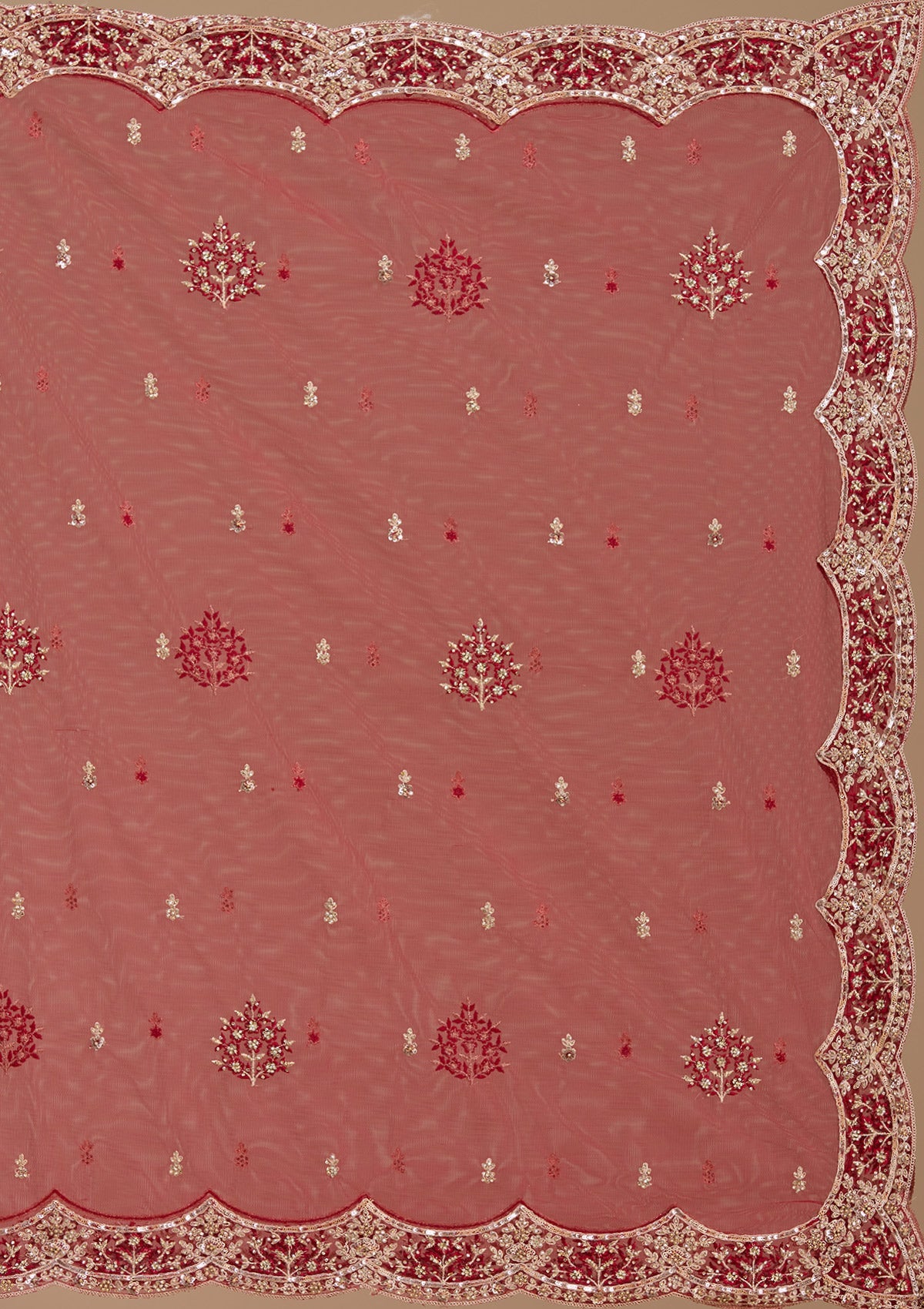 Dark Maroon Readymade Lehenga in Net fabric The Lehenga is embellished with Applique embroidery Accompanied with an Readymade blouse and dupatta Comes with the Koskii promise of premium quality.
