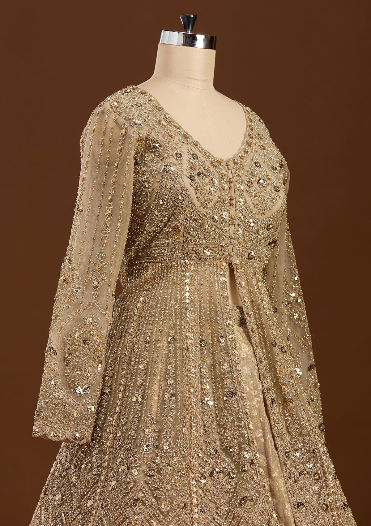 Gold Sequins Net Readymade Lehenga