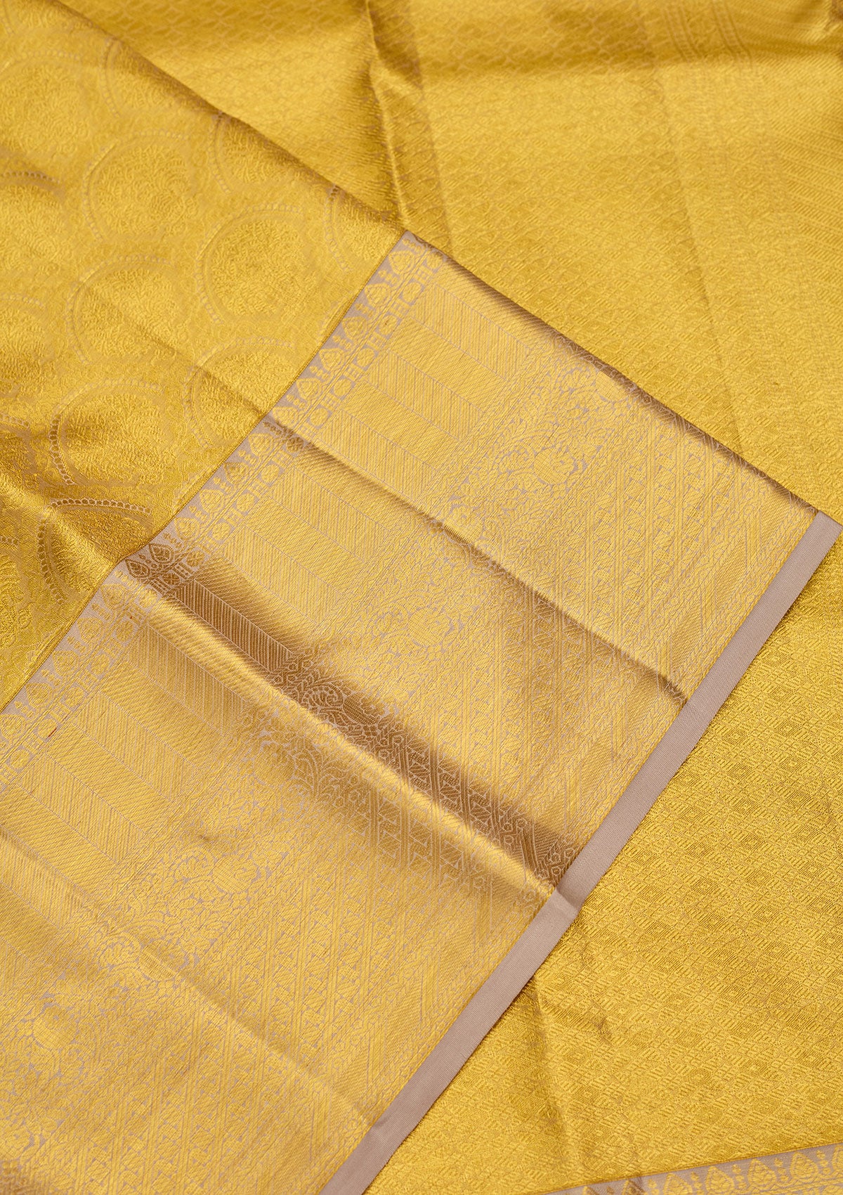 Gold Silk_Saree in Silk fabric. The Silk_Saree is elevated with Zariwork (Gold) embroidery. It comes with an Unstitched blouse. Comes with the Koskii promise of premium quality.