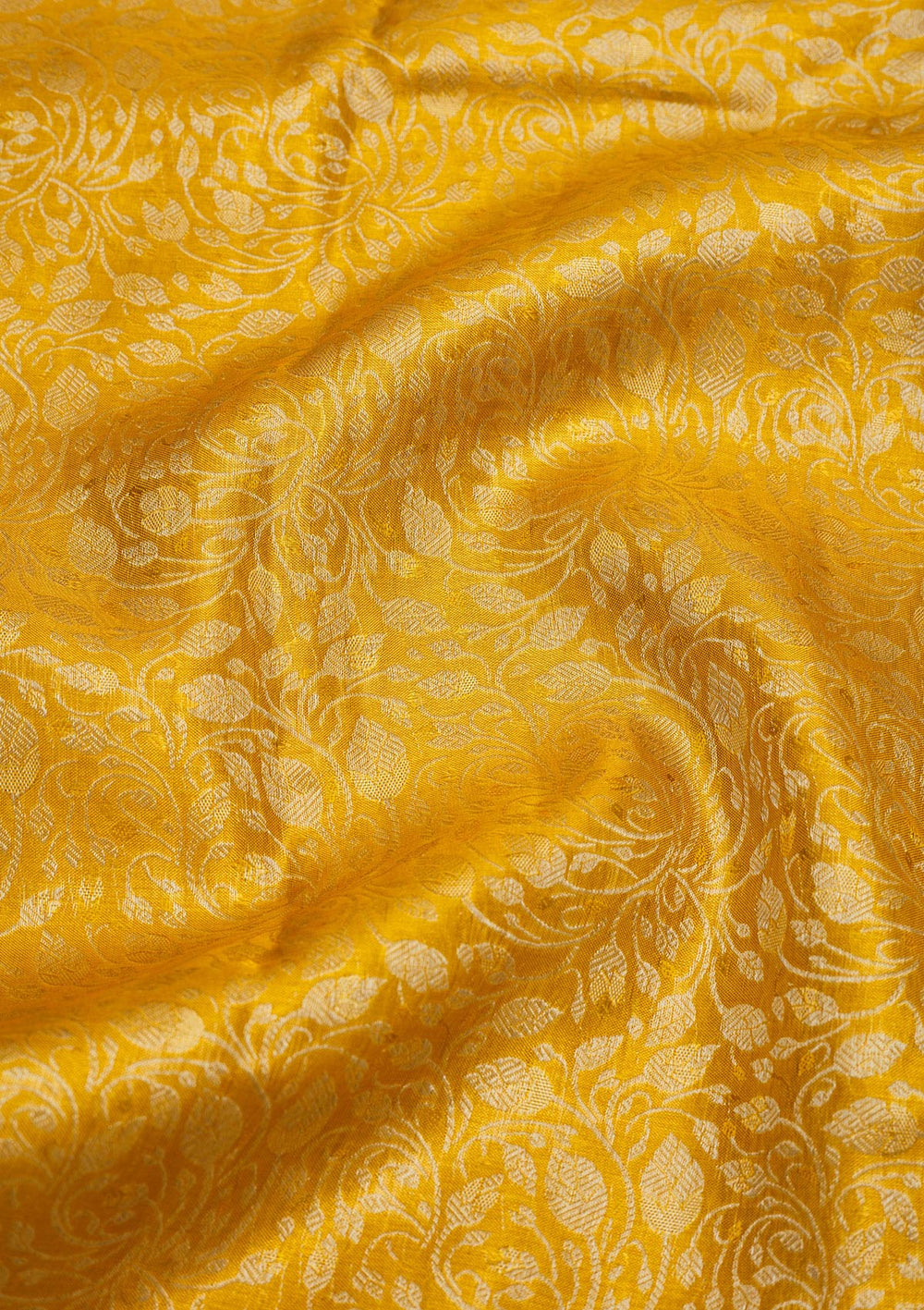 Gold Saree in Pure Silk fabric. The Saree is elevated with Zariwork embroidery. It comes with an Unstitched blouse. Comes with the Koskii promise of premium quality.