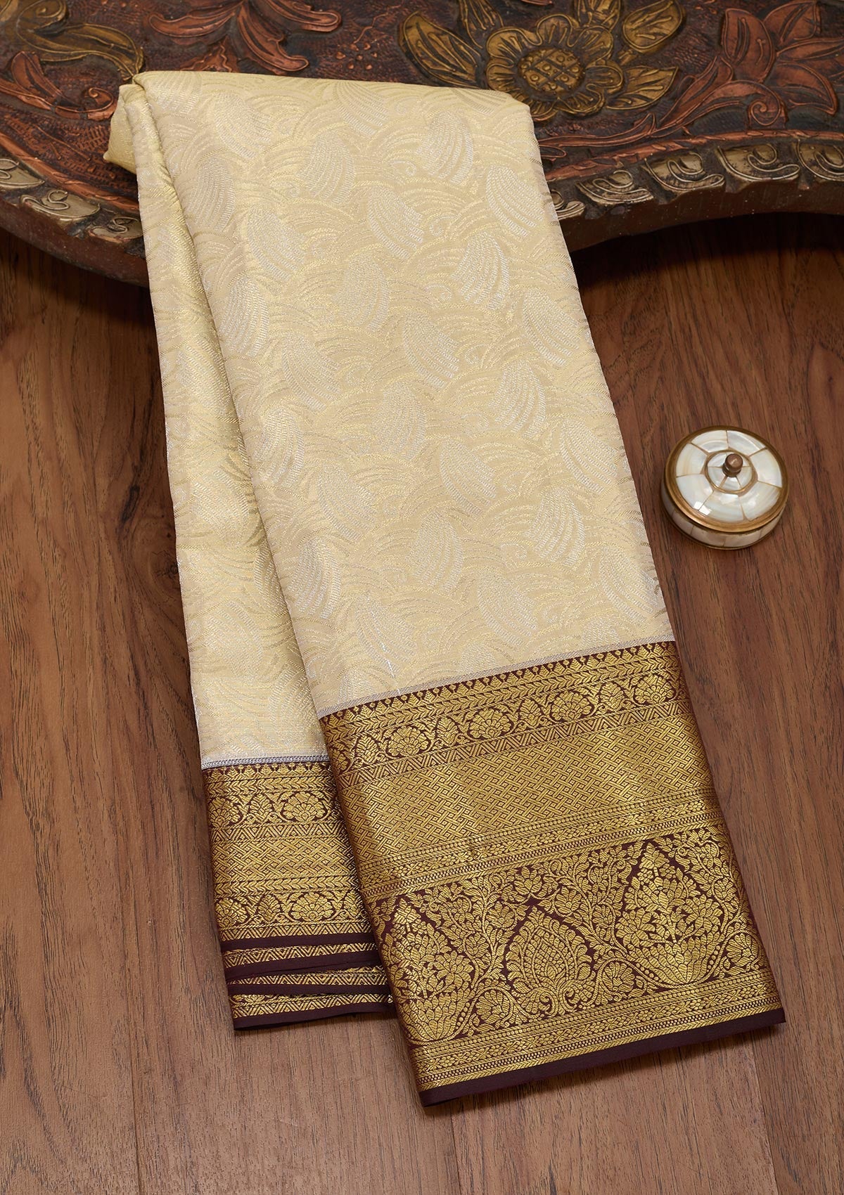 Gold Silk Saree in Tissue fabric The Silk Saree is elevated with Zariwork embroidery It comes with an Unstitched blouse Comes with the Koskii promise of premium quality.