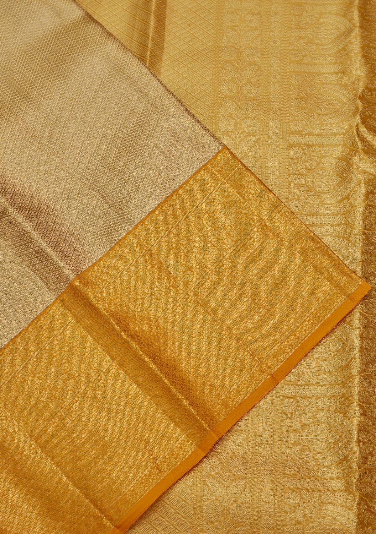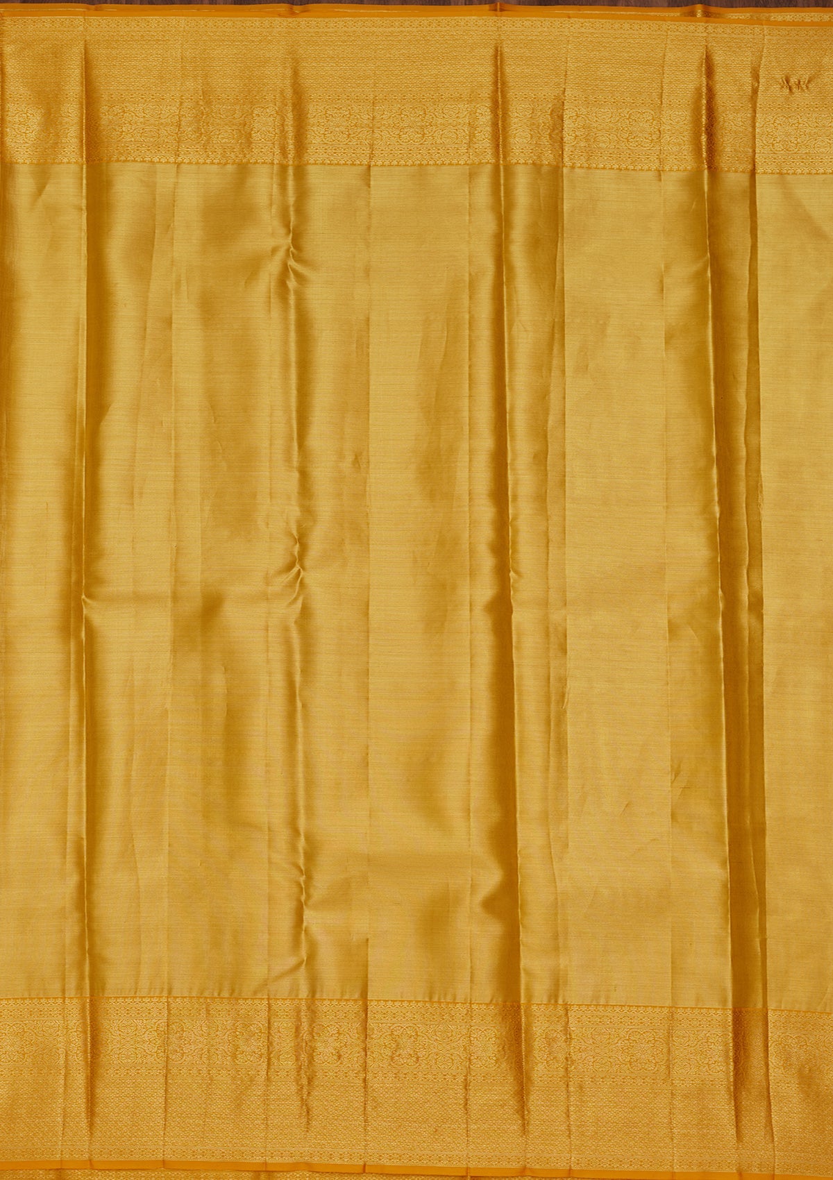 Gold Silk Saree in Tissue fabric. The Silk Saree is elevated with Zariwork embroidery. It comes with an Unstitched blouse. Comes with the Koskii promise of premium quality.