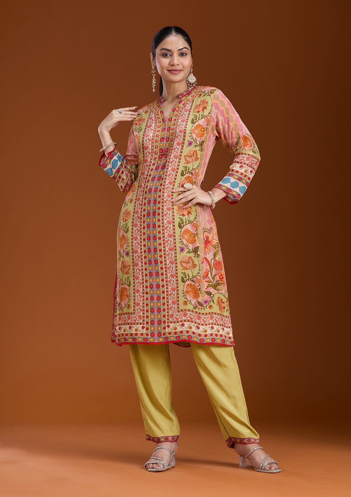 Green Salwar_RM in Crepe fabric. The Salwar_RM is embellished with Printed embroidery. Accompanied with a bottom and dupatta. Comes with the Koskii promise of premium quality.
