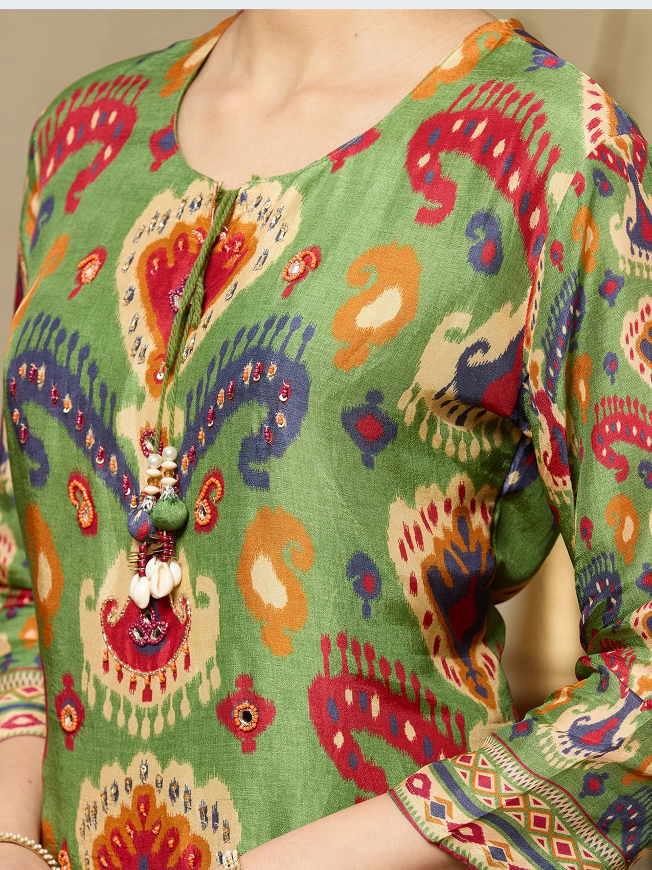 Green Stonework Soft Raw Silk Readymade Salwar Suit