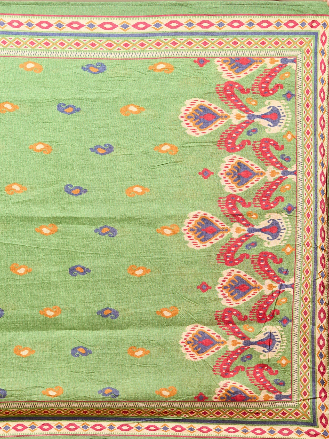 Green Salwar Suit in Soft Raw Silk fabric. The Salwar Suit is embellished with Stonework embroidery. Accompanied with a bottom and dupatta. Comes with the Koskii promise of premium quality.