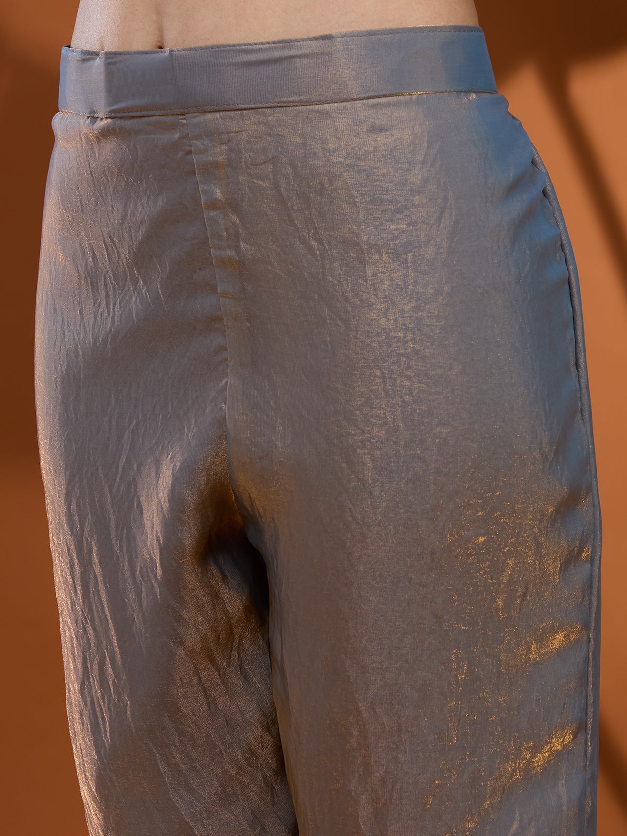 Grey Sequins Soft Raw Silk Readymade Salwar Suit
