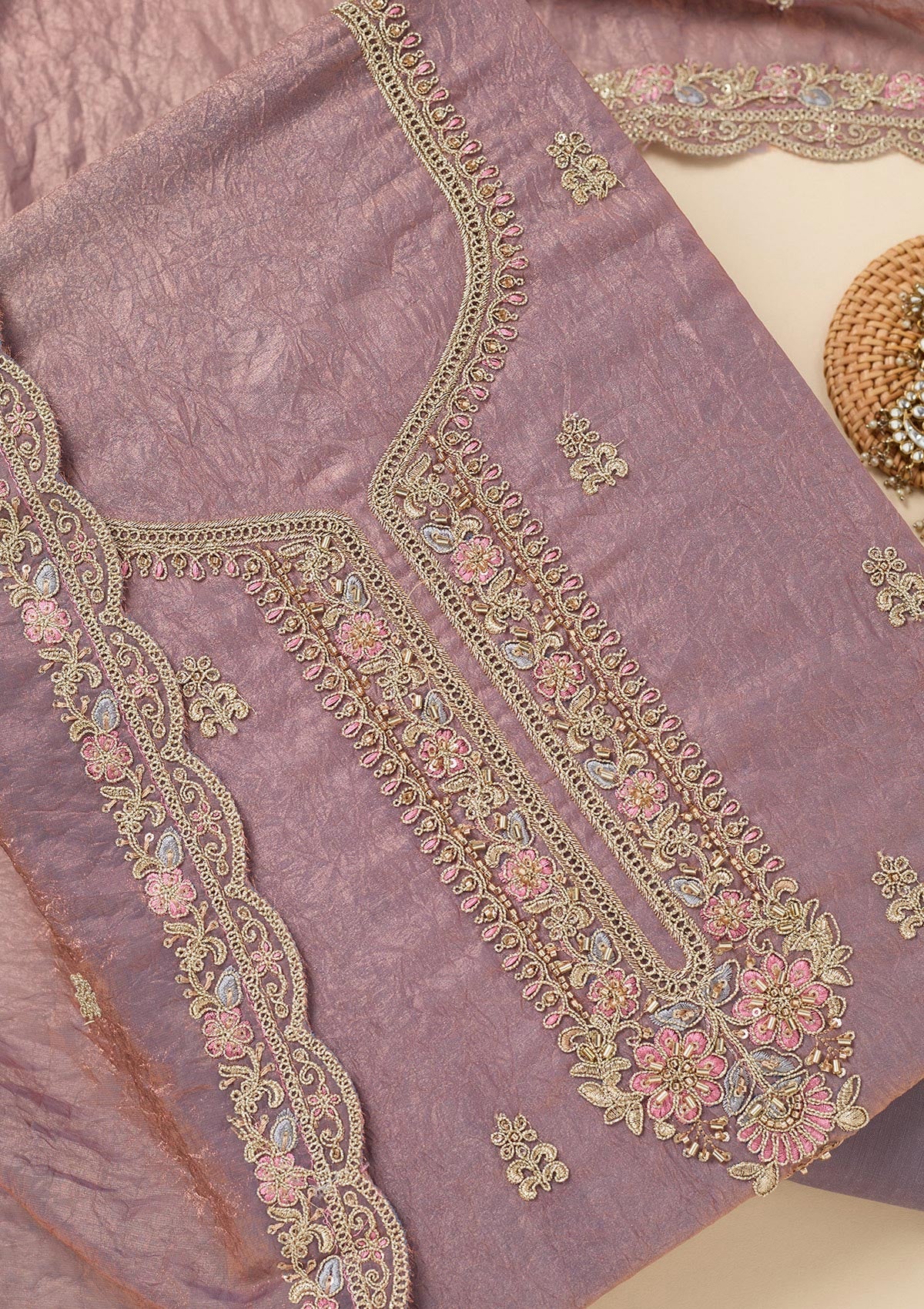 Lavender Aariwork Tissue Unstitched Salwar Suit
