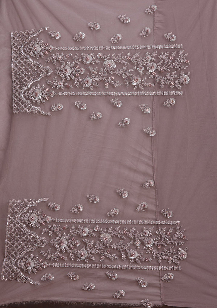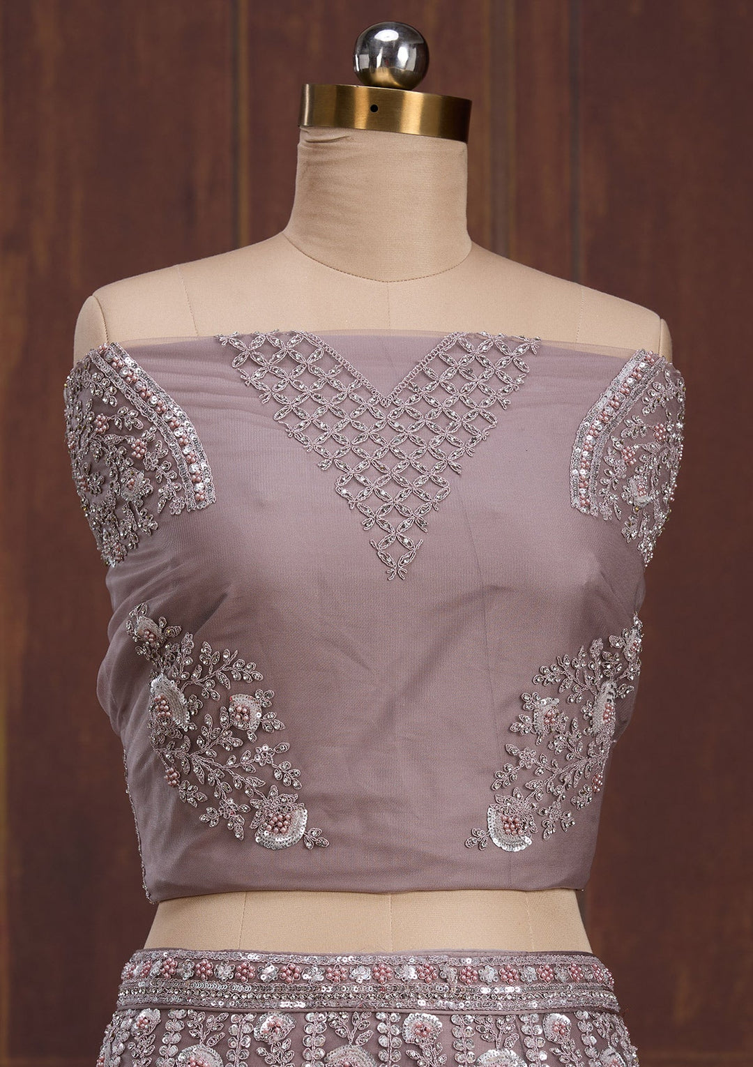Dive into the world of opulence with Koskii's Silver Net Lehenga, where every twirl is a flash of enchantment! This masterpiece blends plush net fabric with mesmerizing silver zari embroidery, creating a visual symphony that's both regal and captivating. Perfect for those who love their ethnic wear with a touch of whimsical charm, this lehenga is all about making unforgettable moments!