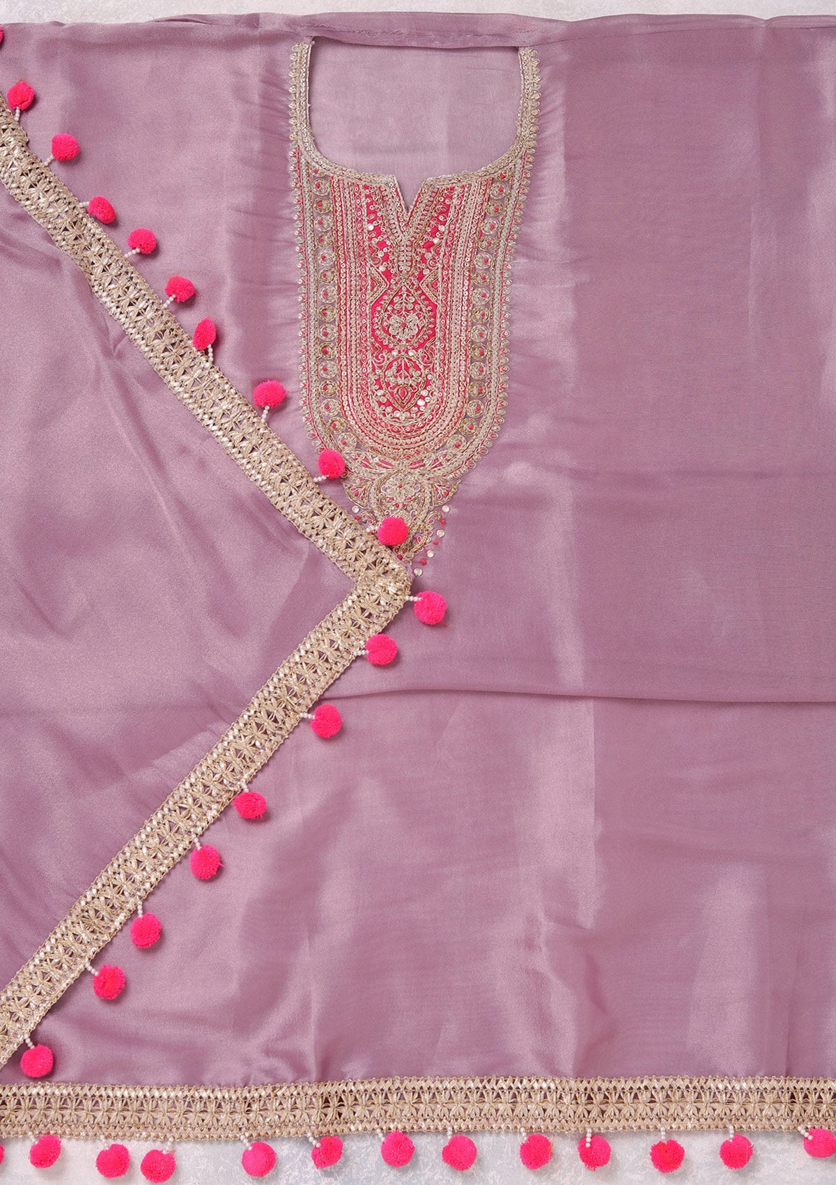 Lavender Salwar Suit in Tissue fabric. The Salwar Suit is embellished with Cording embroidery. Accompanied with a bottom and dupatta. Comes with the Koskii promise of premium quality.