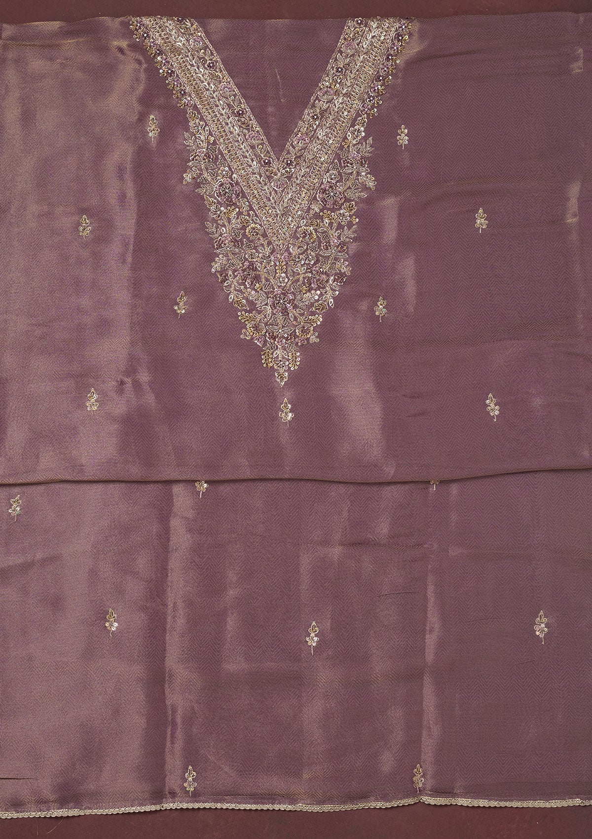 Lavender Cutdana Organza Unstitched Salwar Suit