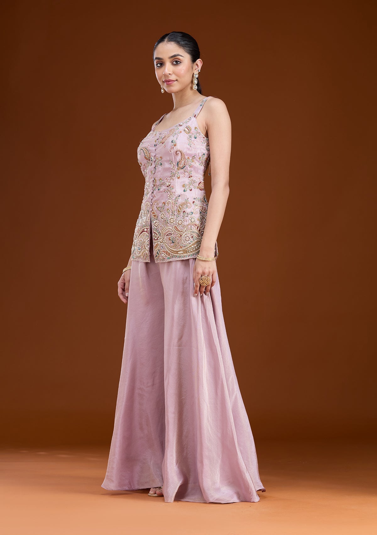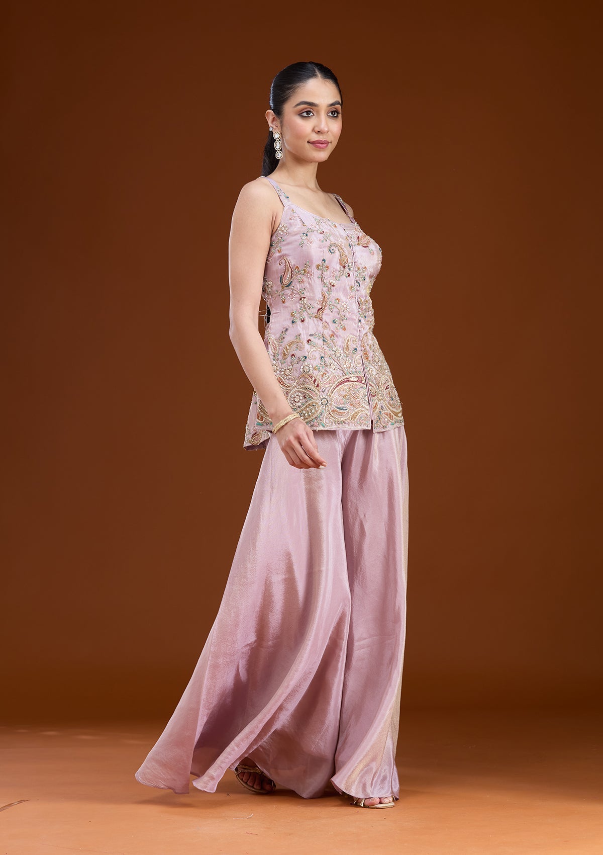 Lavender Salwar_RM in Tissue fabric. The Salwar_RM is embellished with Cutdana embroidery. Accompanied with a bottom and dupatta. Comes with the Koskii promise of premium quality.