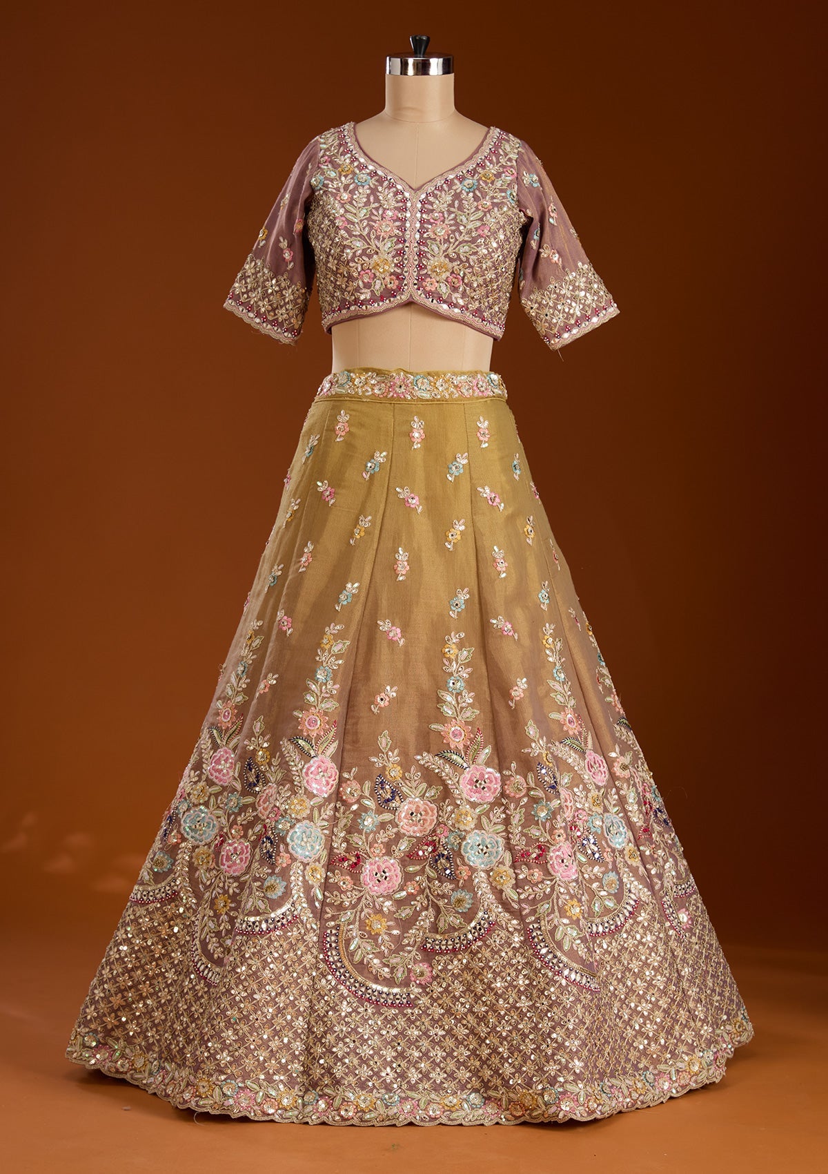 Lavender Threadwork Net Readymade Lehenga