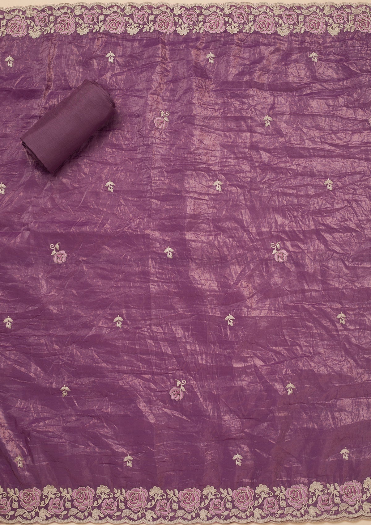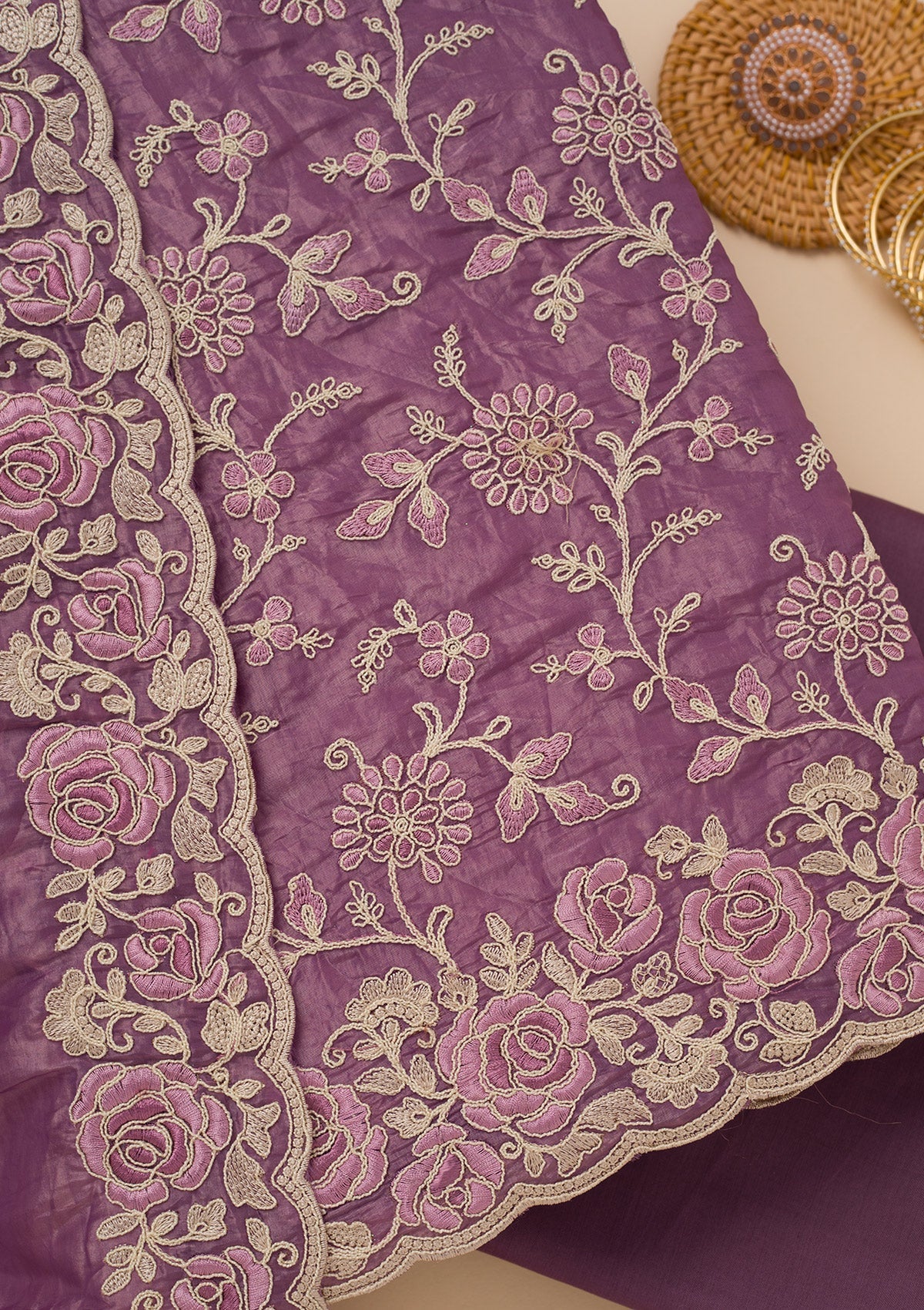 Lavender Threadwork Semi Crepe Unstitched Salwar Suit