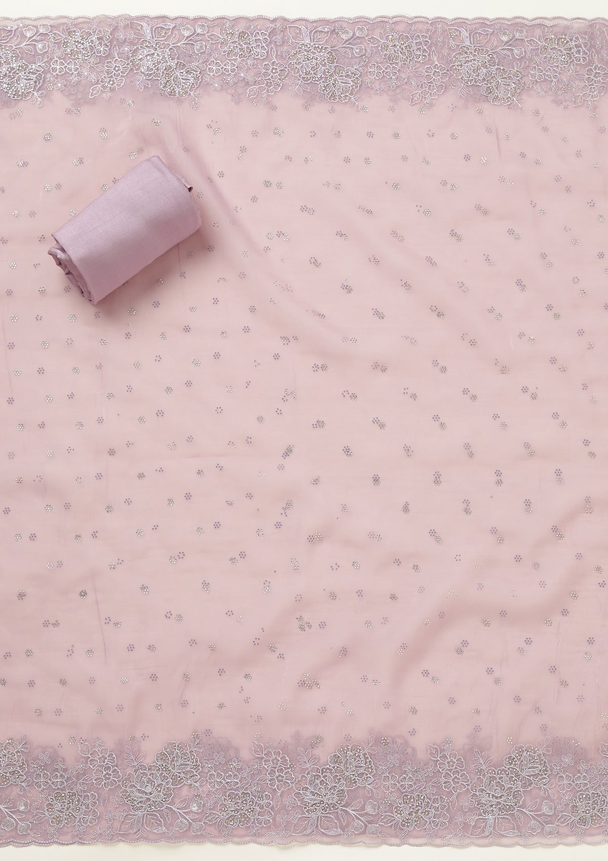 Lavender Threadwork Tissue Unstitched Salwar Suit