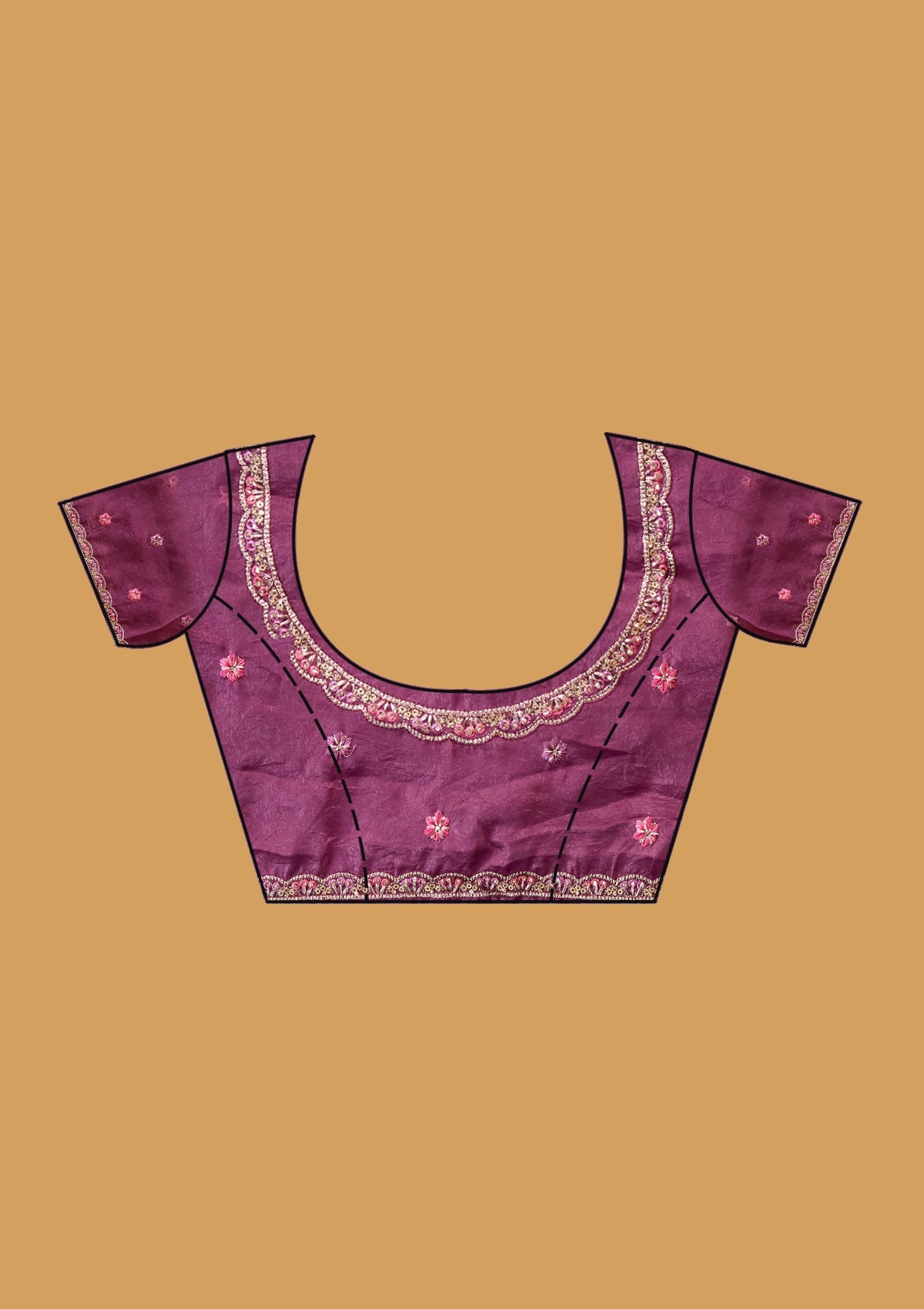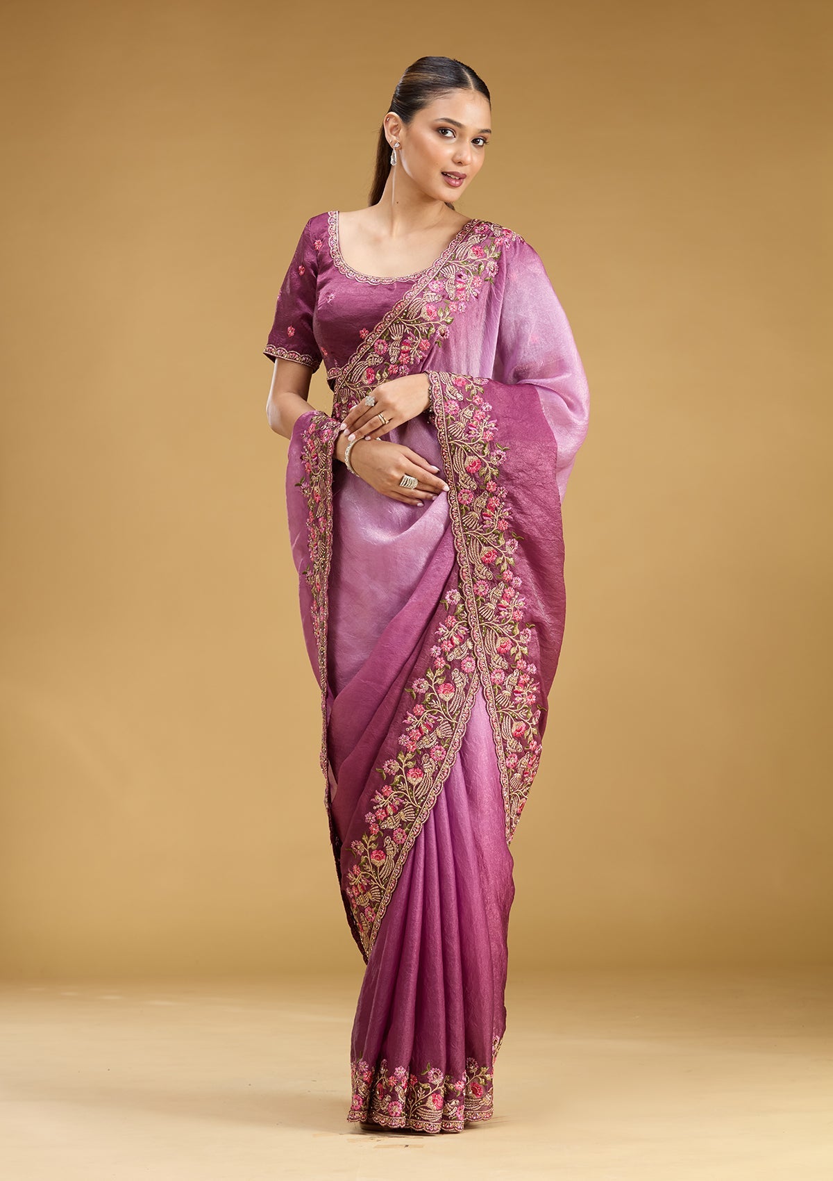 Lavender Saree in Tissue fabric. The Saree is elevated with Threadwork embroidery. It comes with an Unstitched blouse. Comes with the Koskii promise of premium quality.