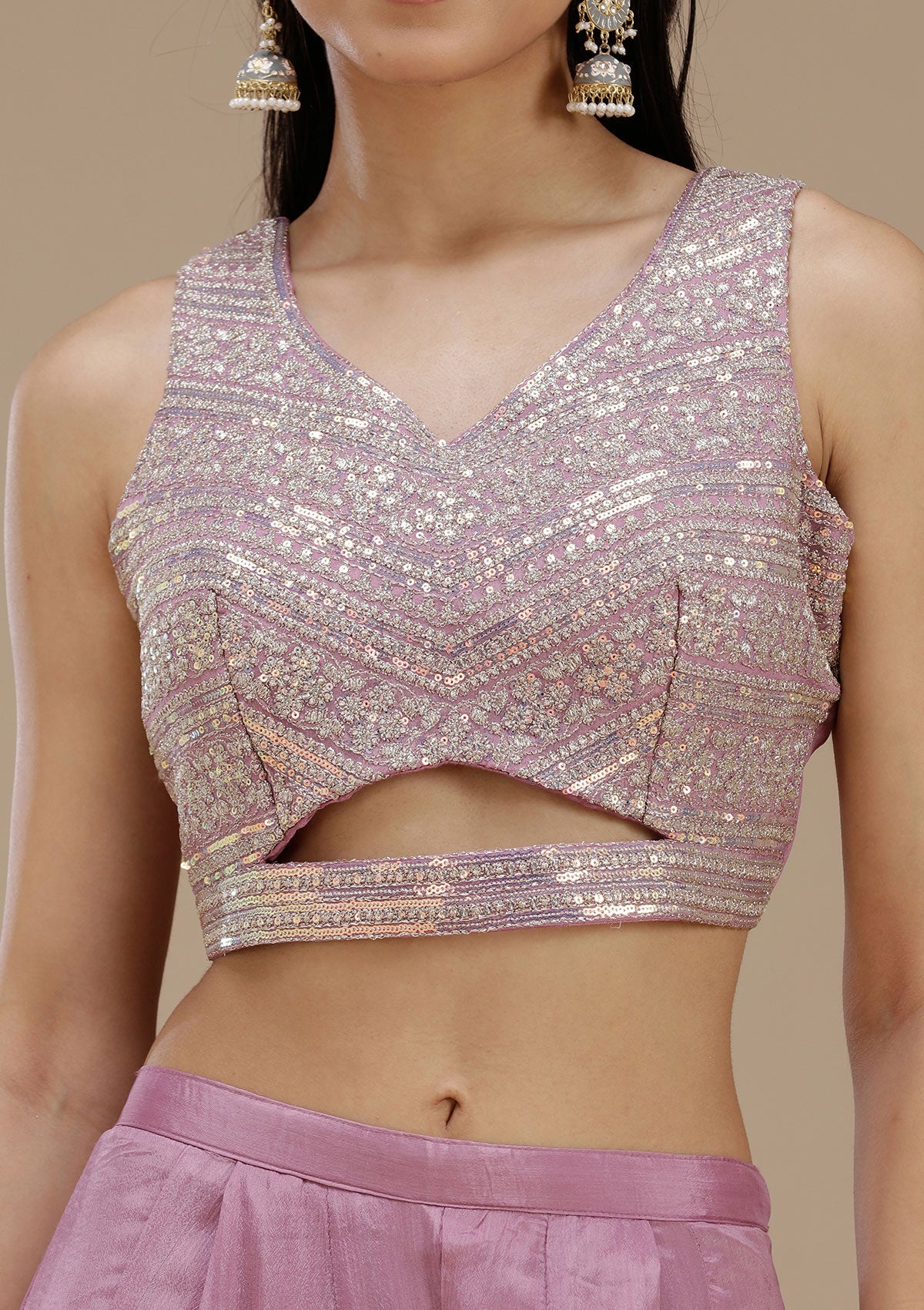 Lavender Salwar Suit in Crepe fabric. The Salwar Suit is embellished with Zariwork (Gold) embroidery. Accompanied with a bottom and dupatta. Comes with the Koskii promise of premium quality.