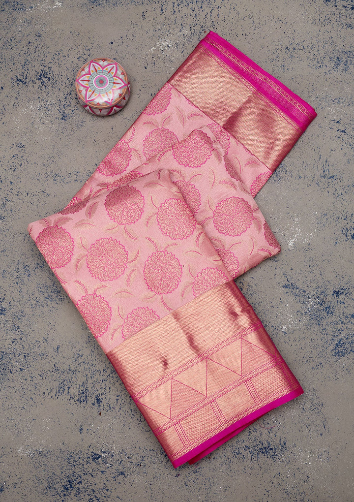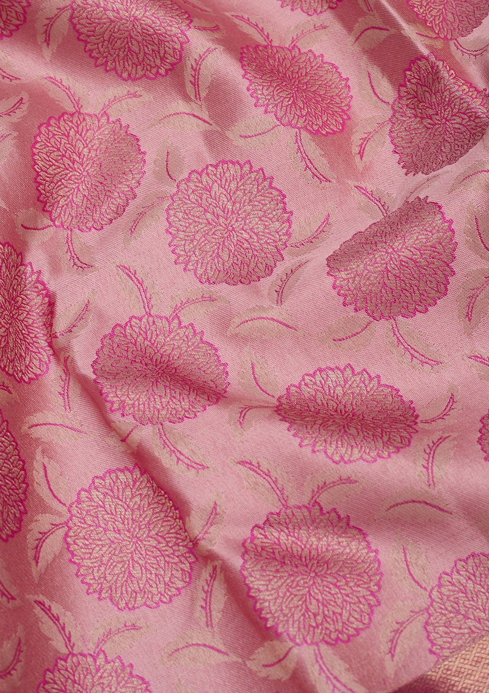 Lavender Saree in Pure Silk fabric The Saree is elevated with Zariwork embroidery It comes with an Unstitched blouse Comes with the Koskii promise of premium quality.