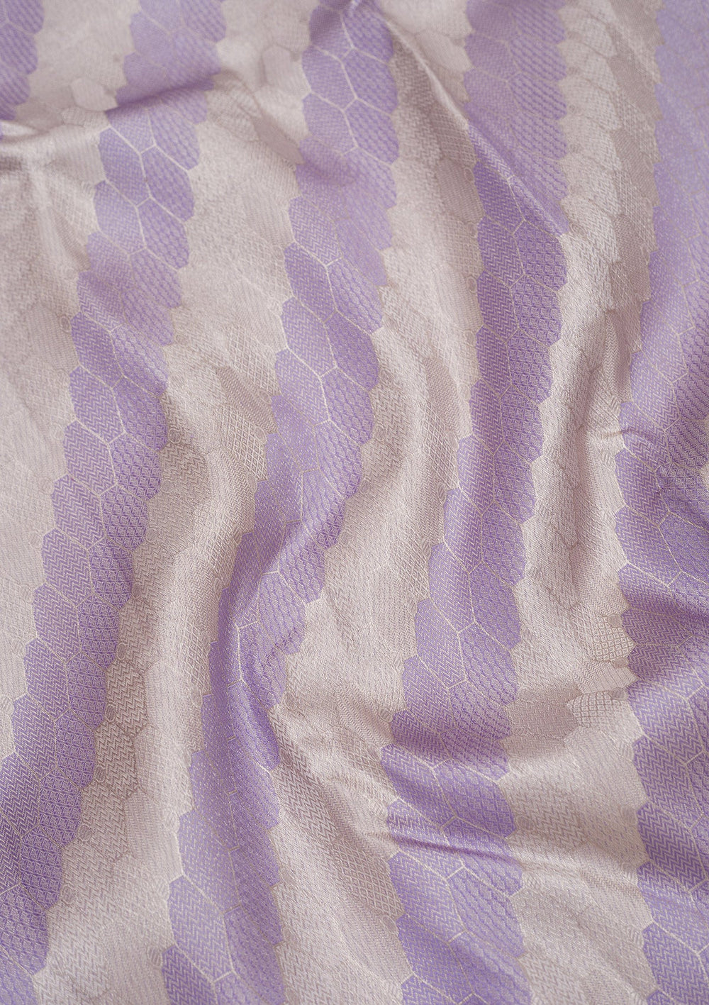 Lavender Saree in Pure Silk fabric. The Saree is elevated with Zariwork embroidery. It comes with an Unstitched blouse. Comes with the Koskii promise of premium quality.