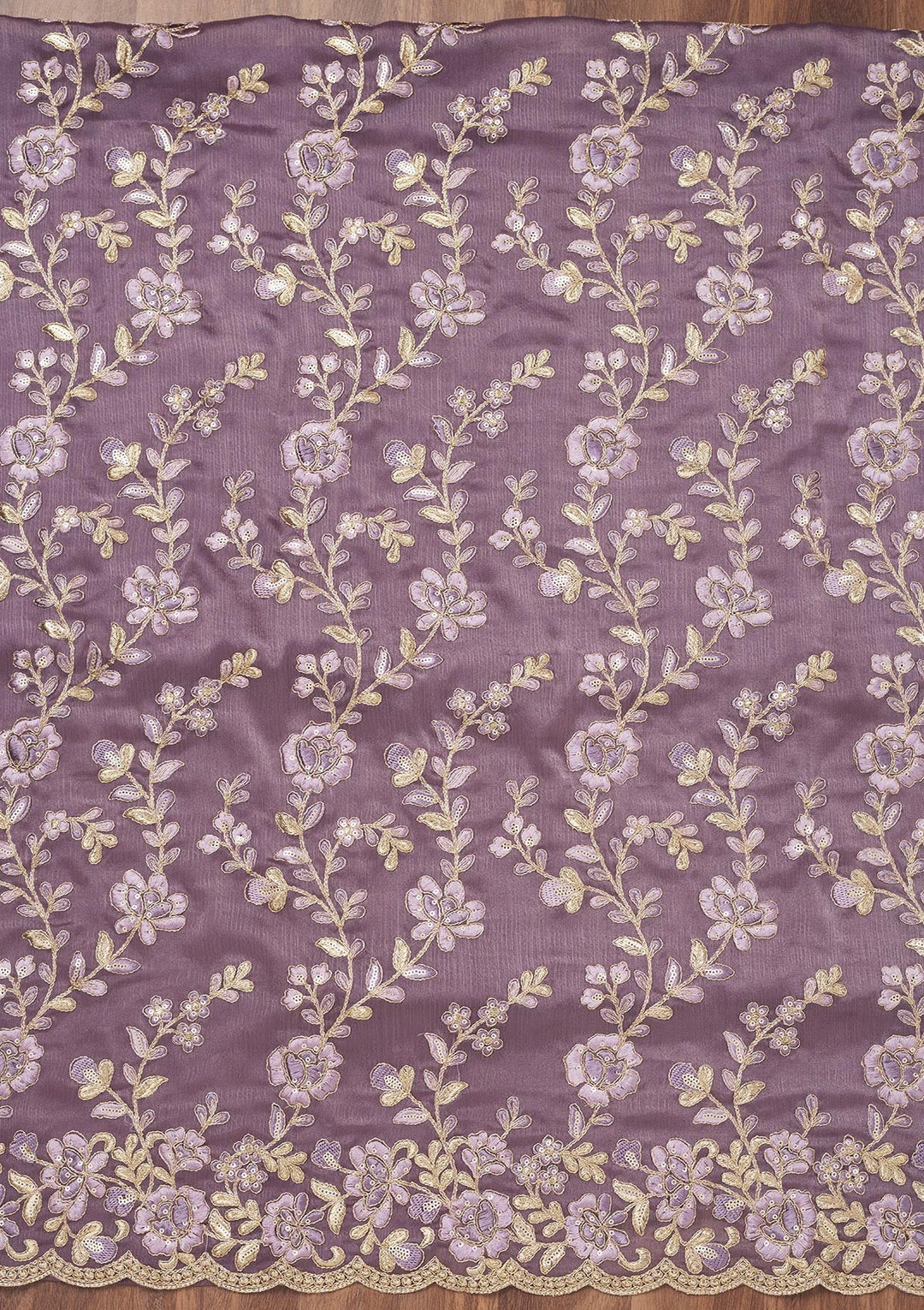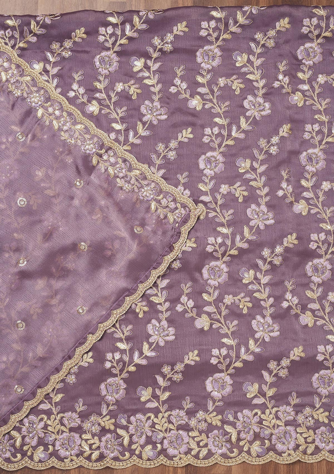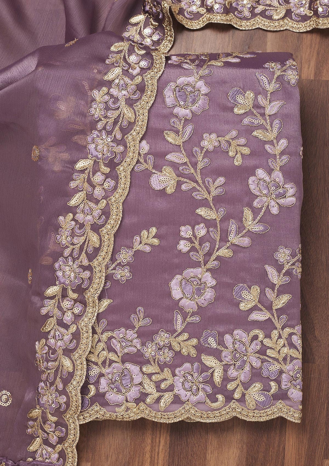 Lavender Zariwork Semi Crepe Unstitched Salwar Suit