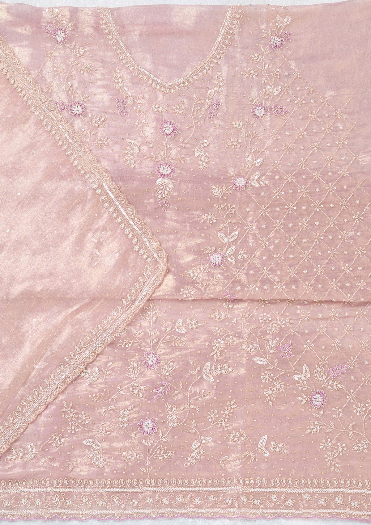 Lavender Zariwork Tissue Unstitched Salwar Suit