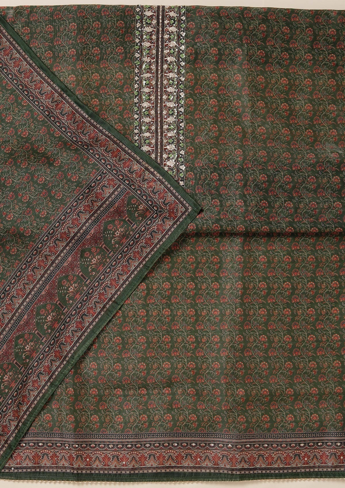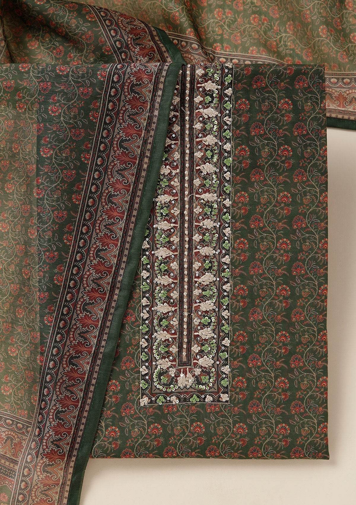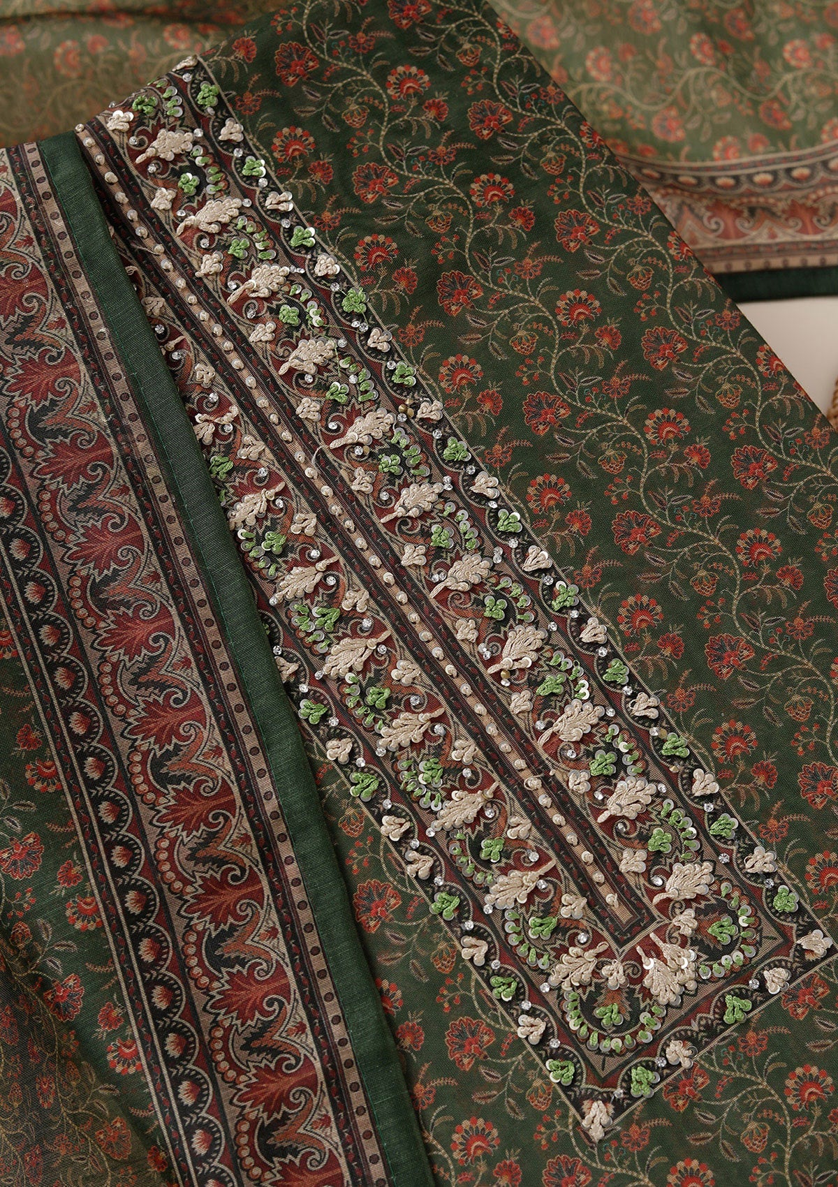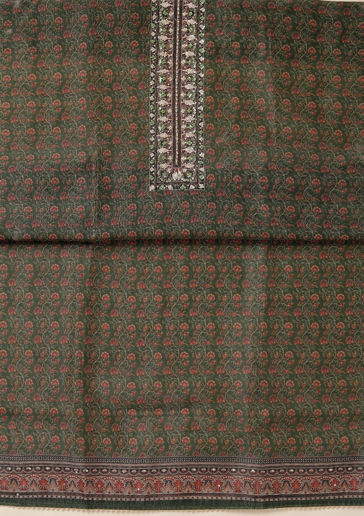 Leaf Green Threadwork Chanderi Unstitched Salwar Suit
