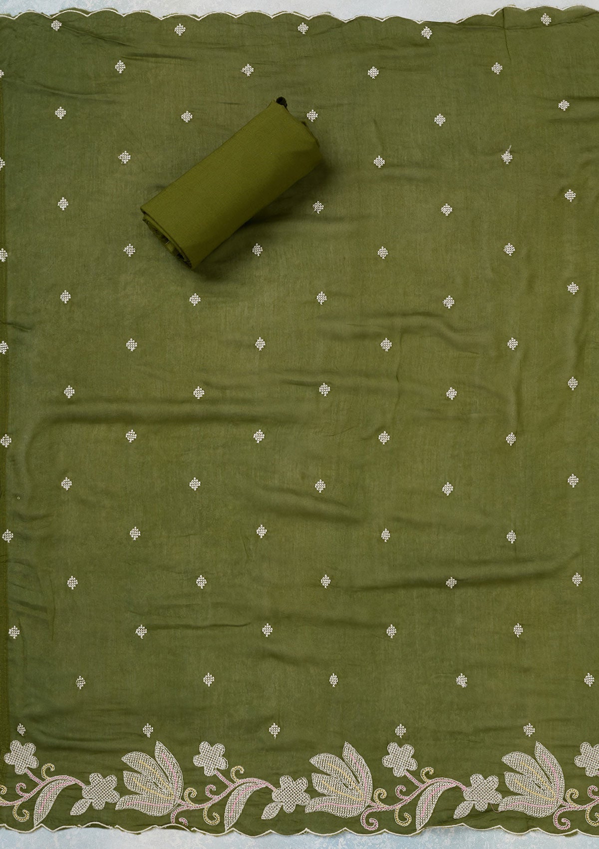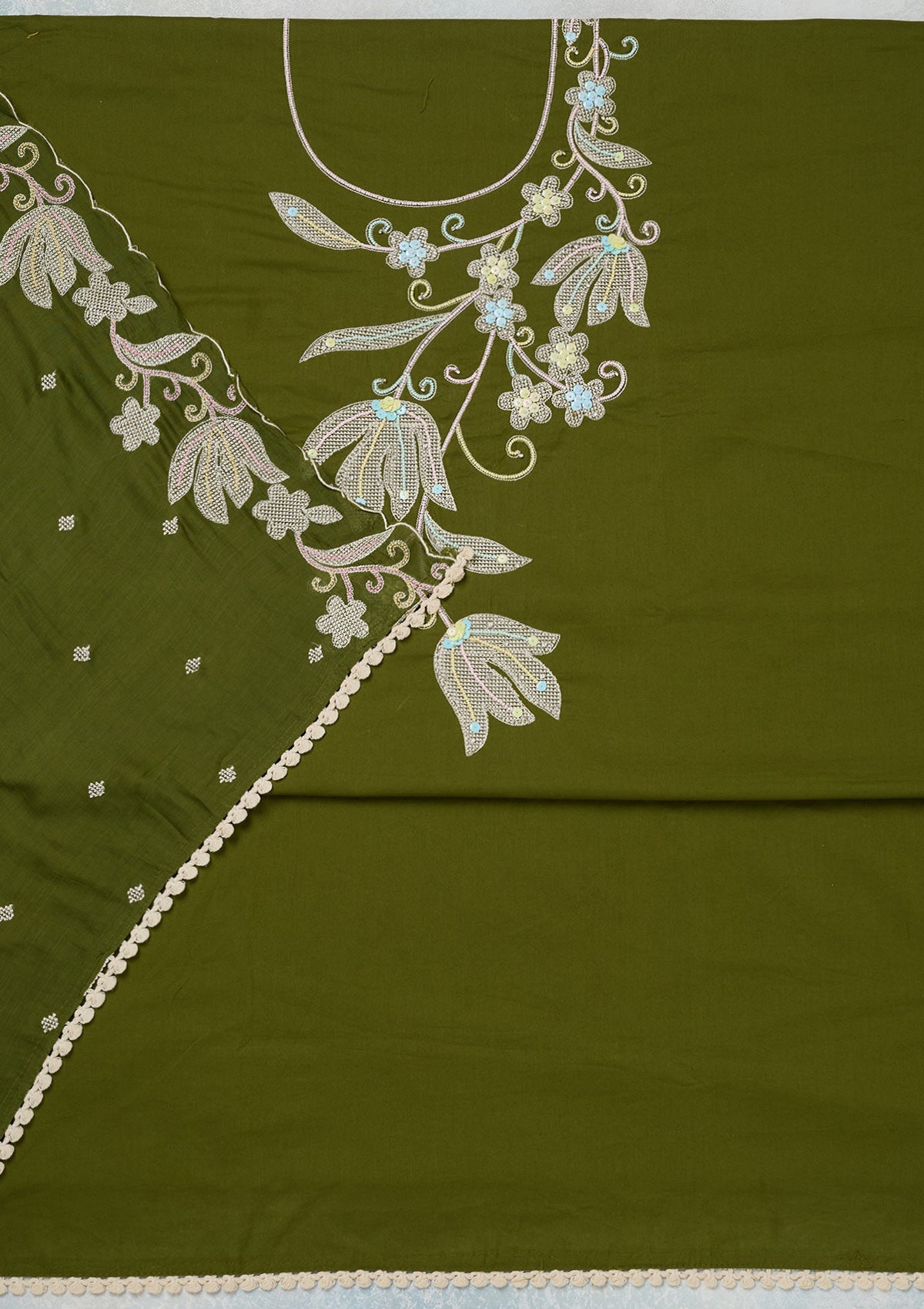 Leaf Green Threadwork Cotton Unstitched Salwar Suit