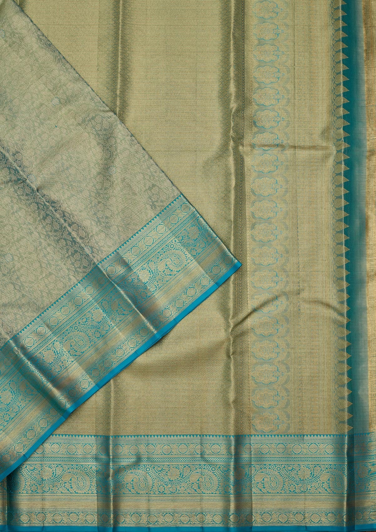 Leaf Green Zariwork Tissue Silk Saree