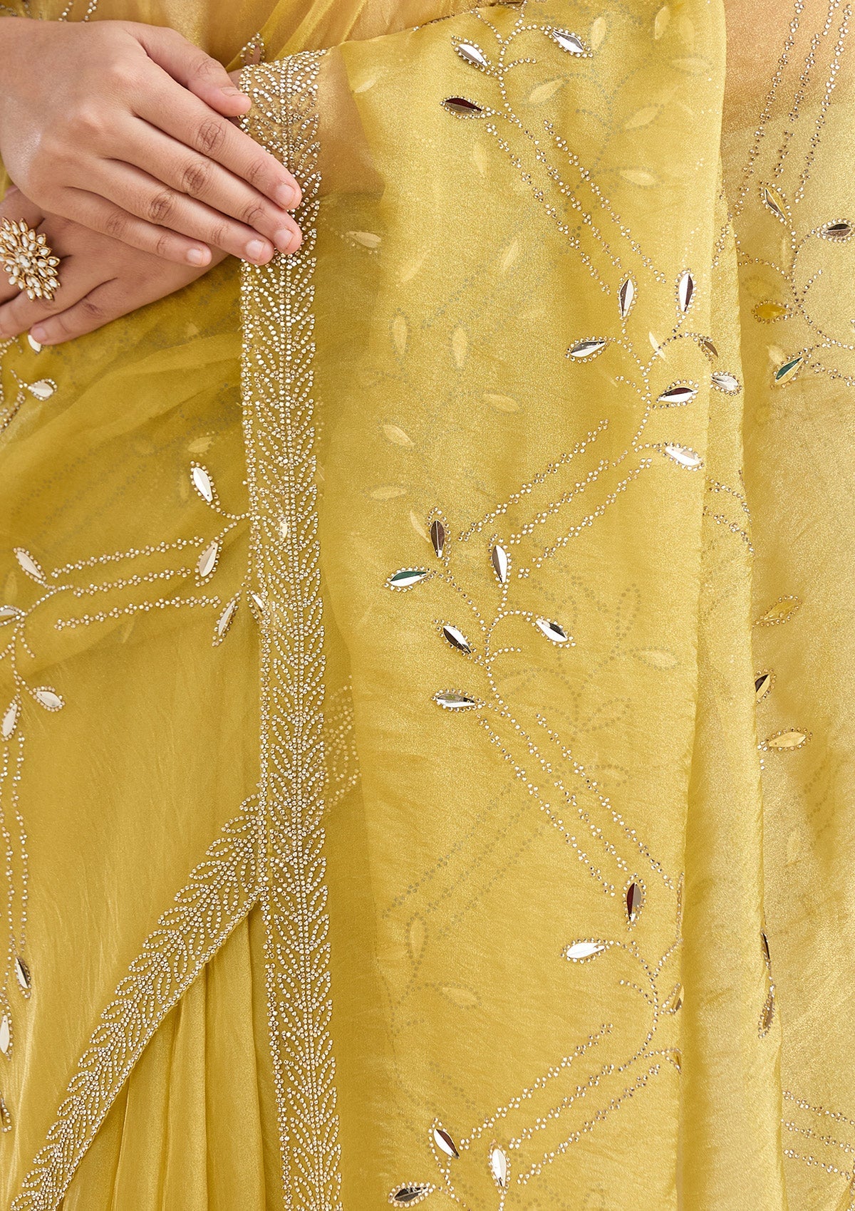 Lemon Yellow Stonework (Gold) Tissue Saree