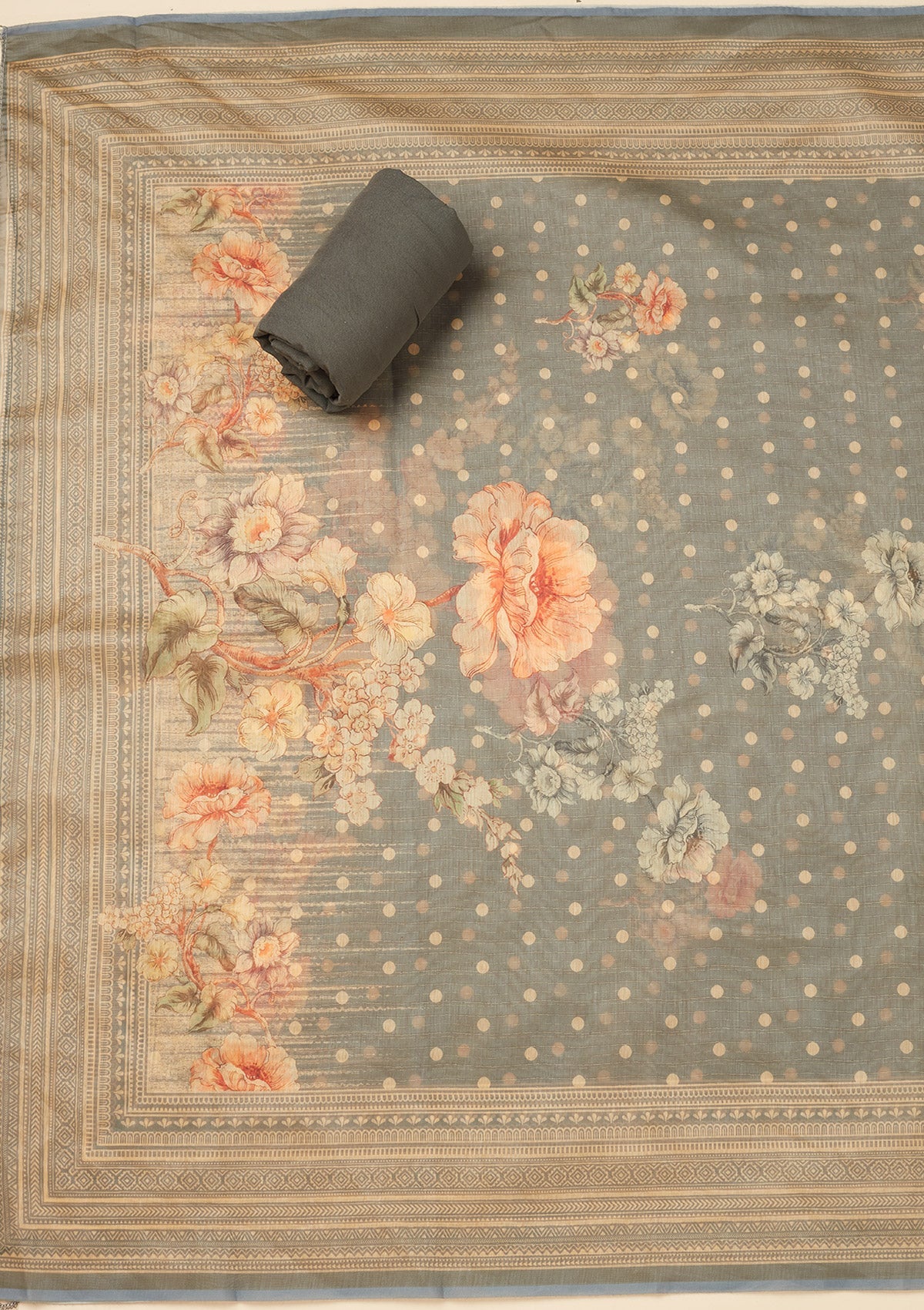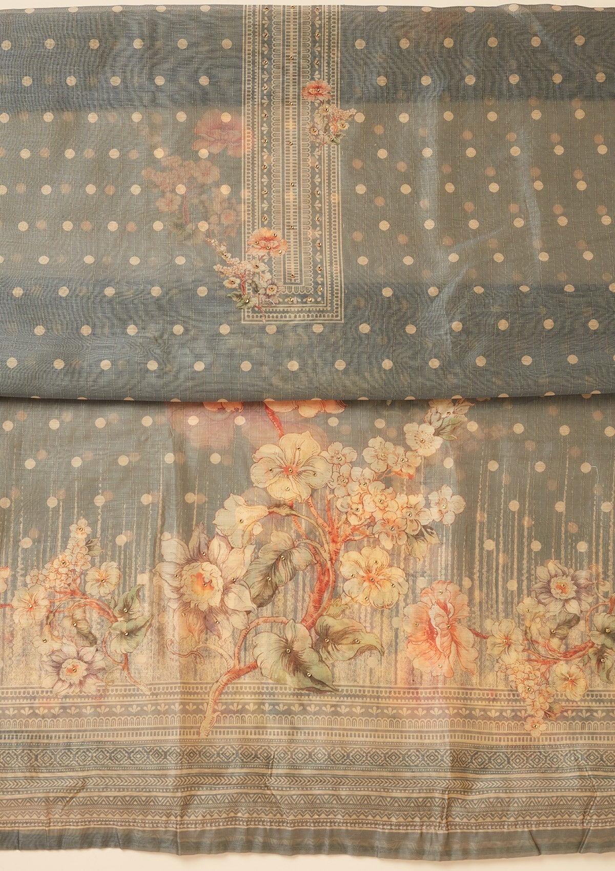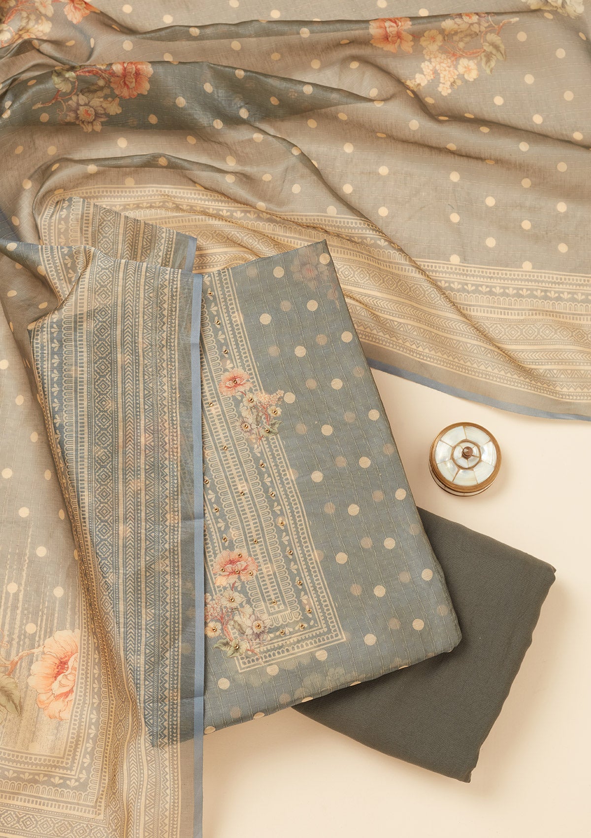 Light Grey Zariwork (Gold) Chanderi Unstitched Salwar Suit