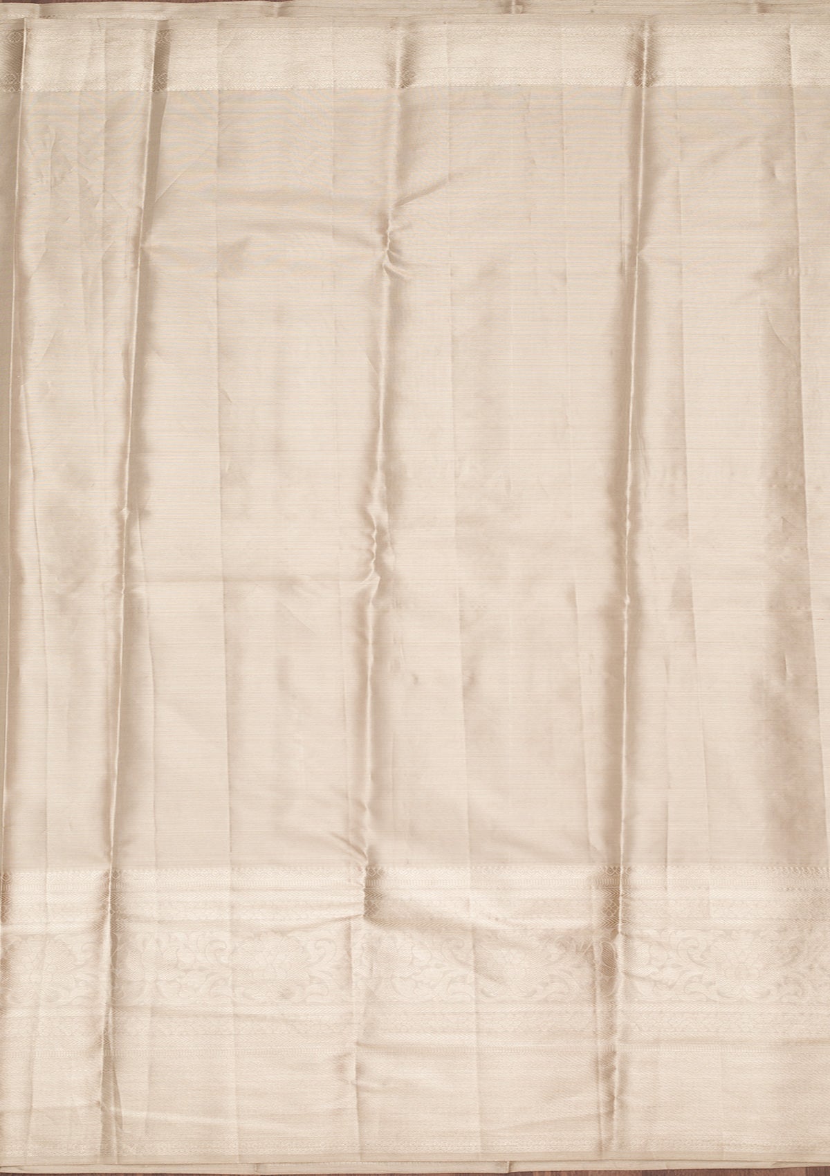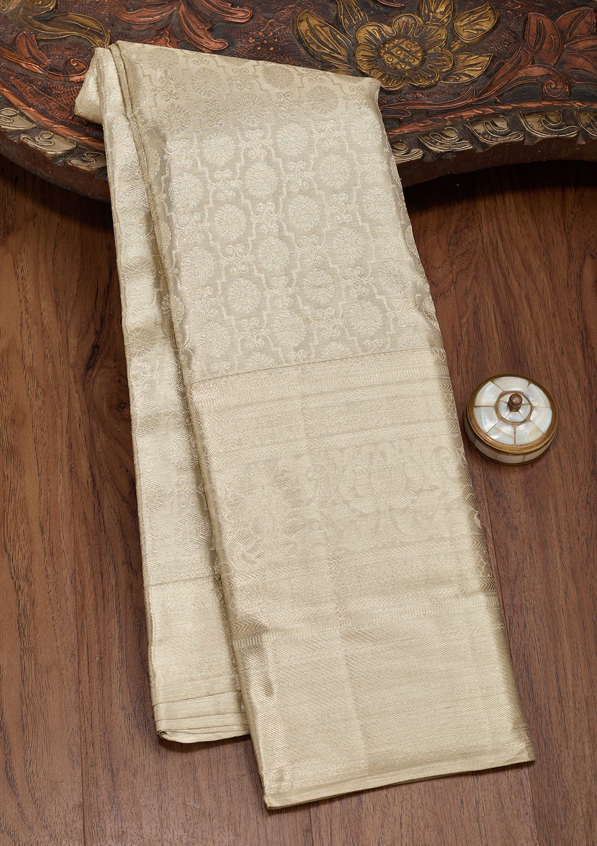 Light Grey Silk Saree in Tissue fabric. The Silk Saree is elevated with Zariwork embroidery. It comes with an Unstitched blouse. Comes with the Koskii promise of premium quality.