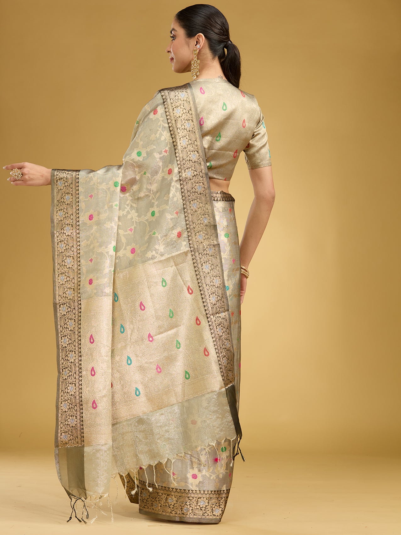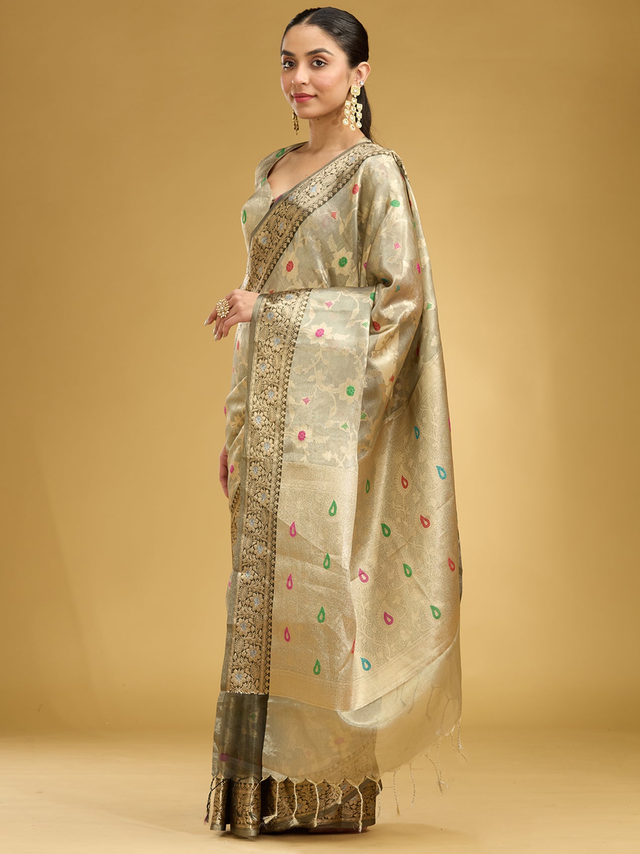 Light Grey Zariwork Tissue Silk Saree