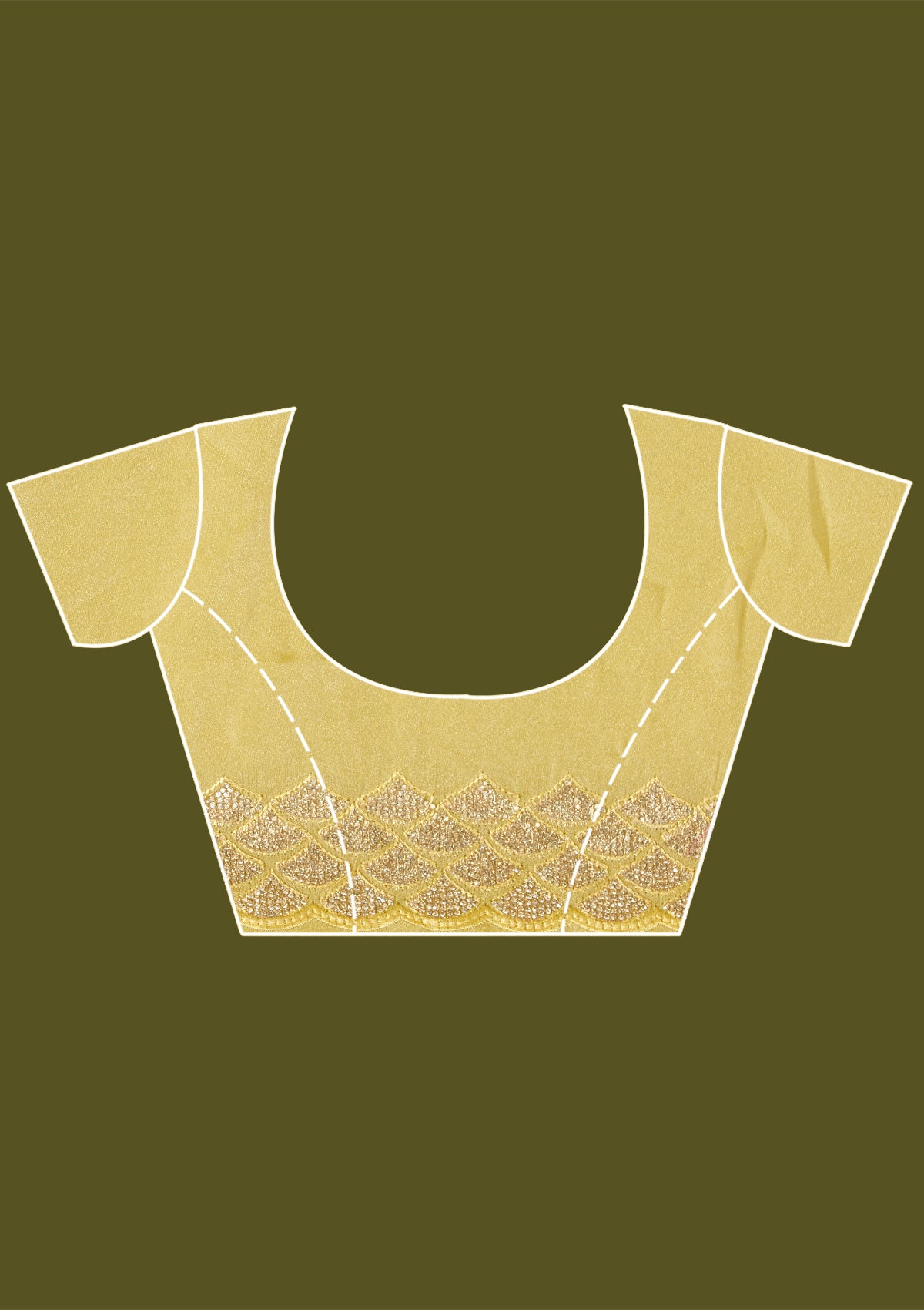 Lime Green Saree in Tissue fabric. The Saree is elevated with Sequins embroidery. It comes with an Unstitched blouse. Comes with the Koskii promise of premium quality.
