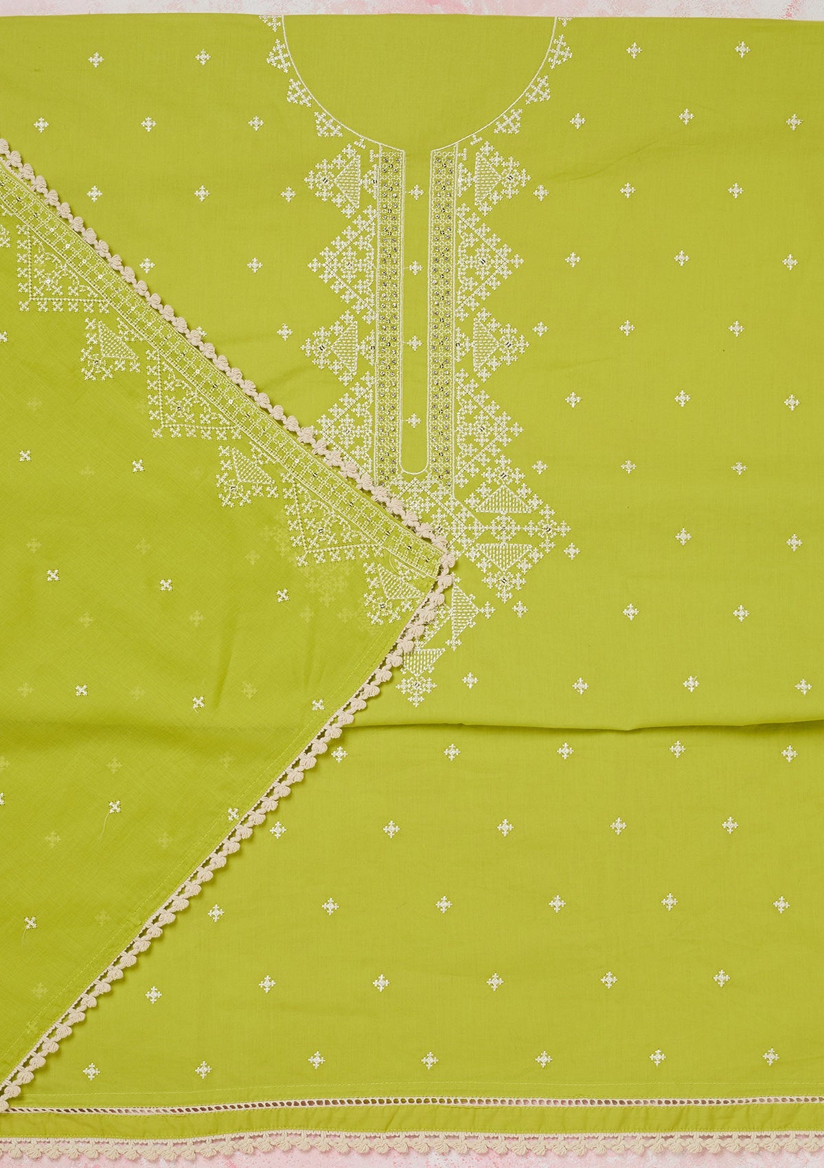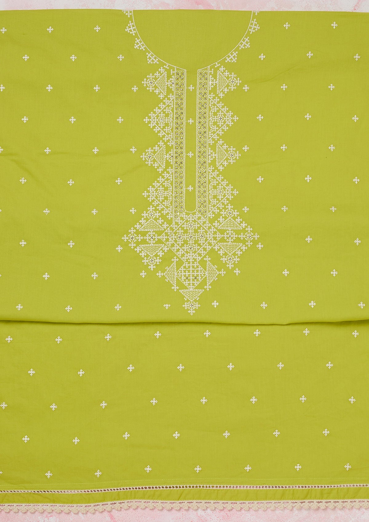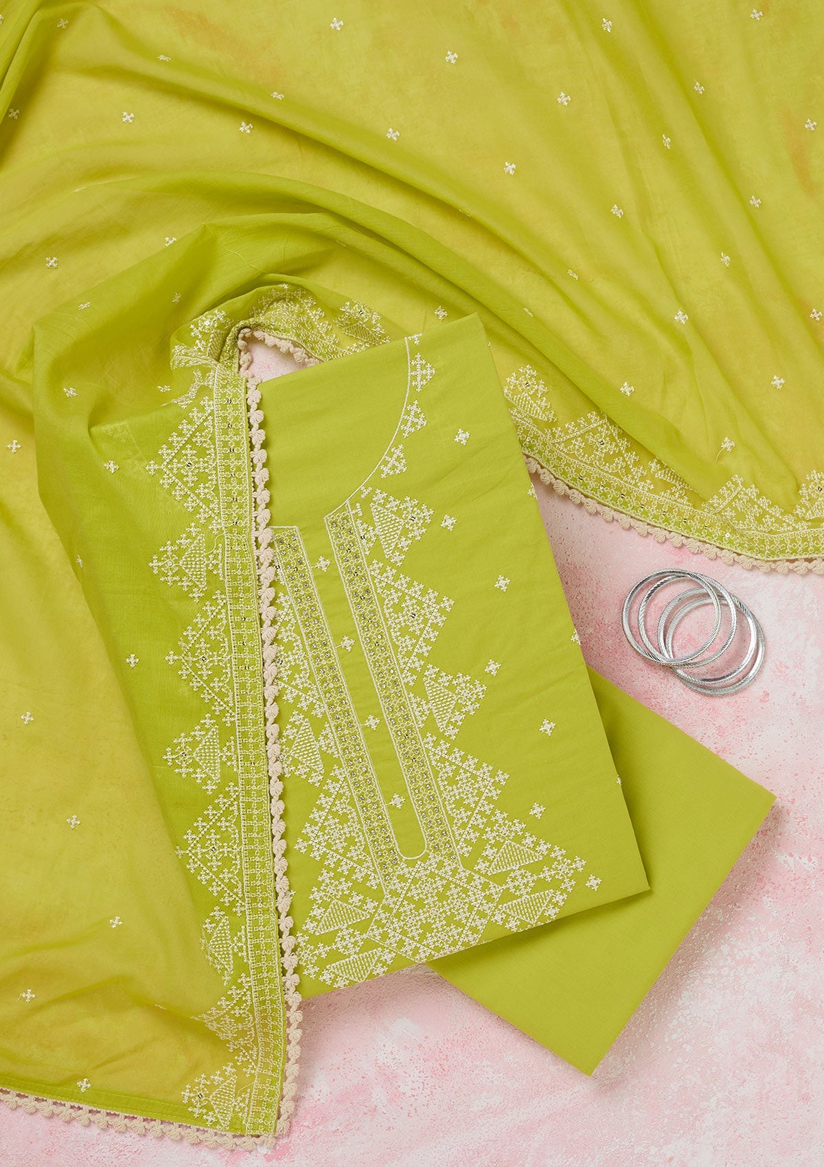 Lime Green Threadwork Semi Crepe Unstitched Salwar Suit