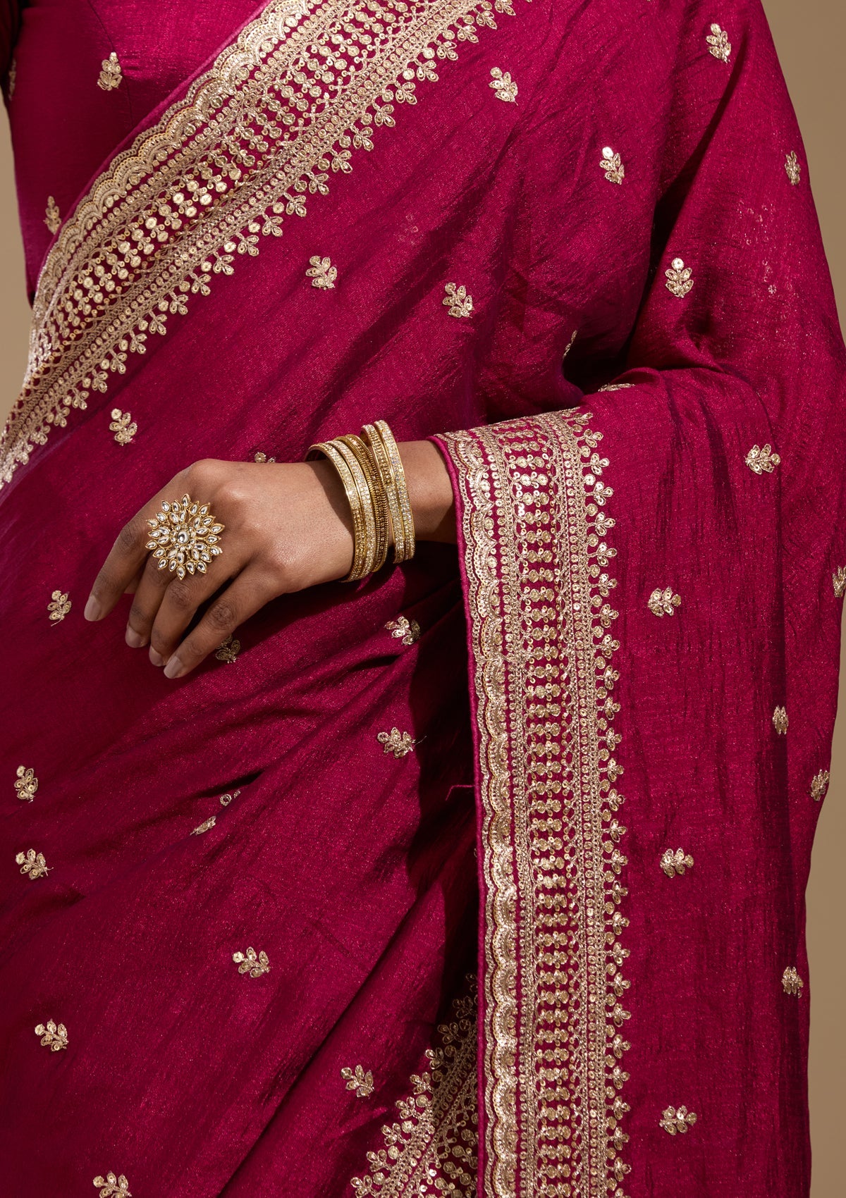 Magenta Pink Cording Soft Raw Silk Saree