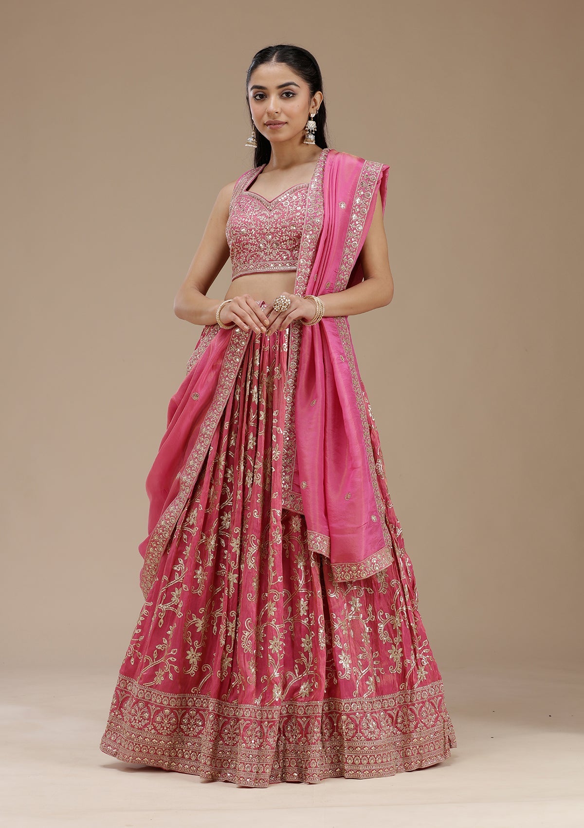 Magenta Pink Sequins Shimmer Readymade Lehenga