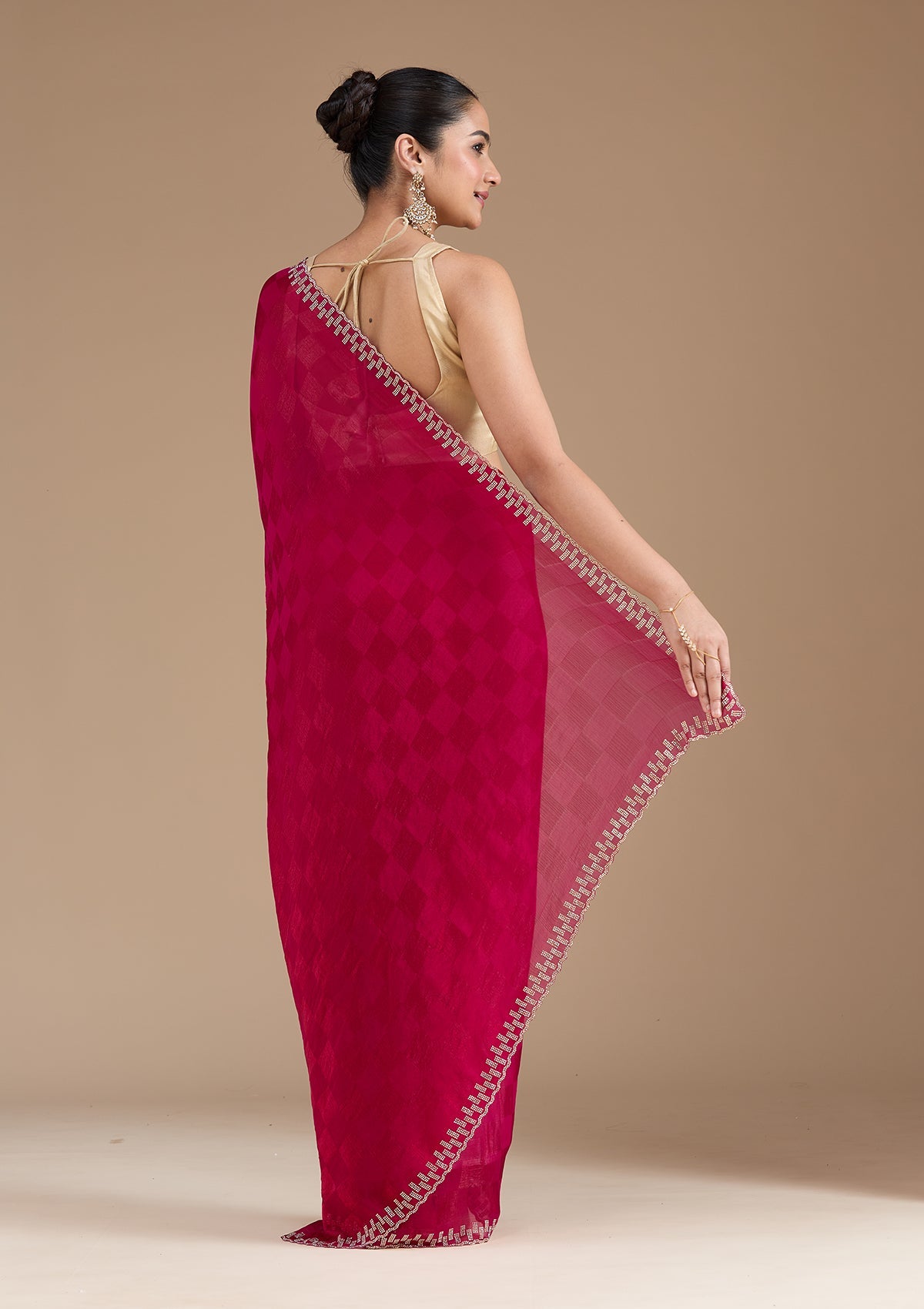 Magenta Pink Stonework (Gold) Tissue Saree