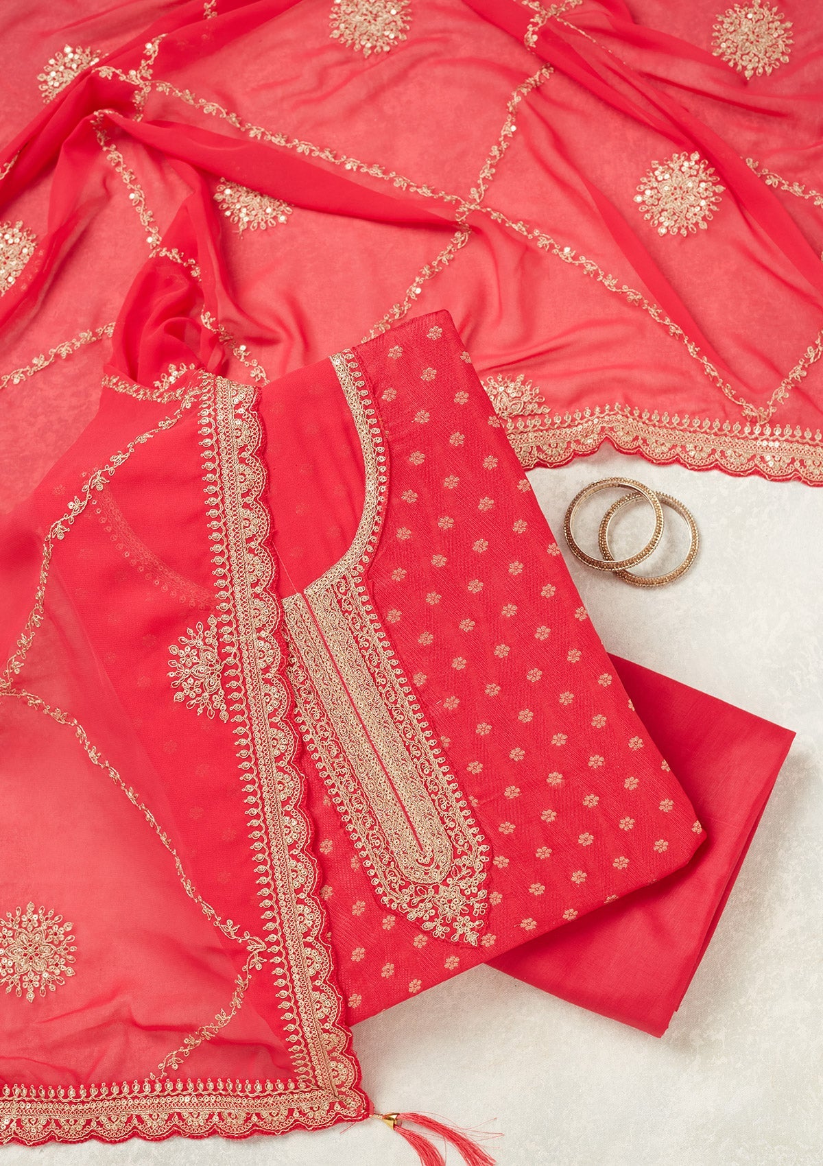 Magenta Pink Zariwork (Gold) Chanderi Unstitched Salwar Suit