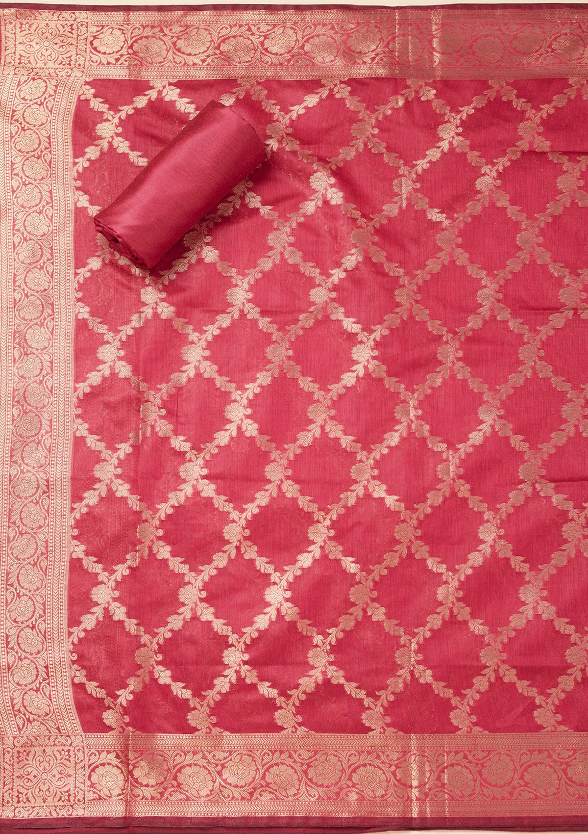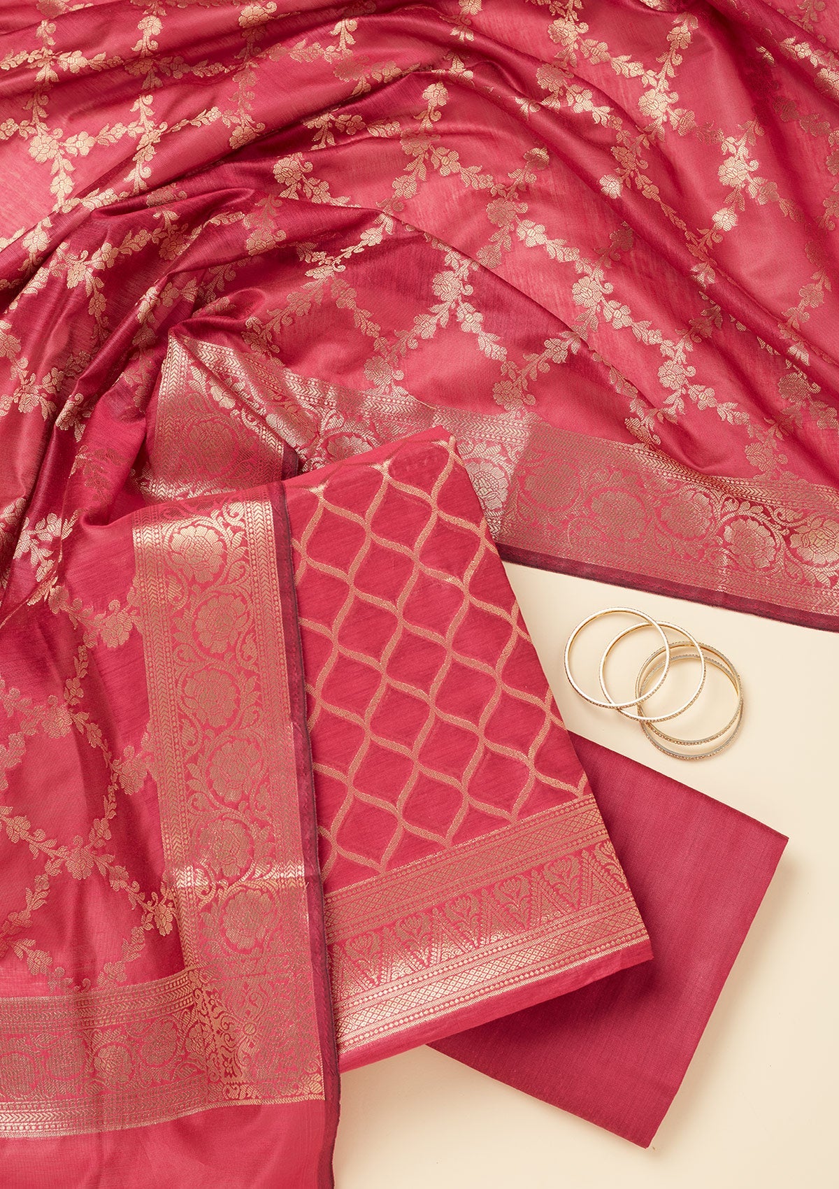 Magenta Pink Zariwork (Gold) Silk Unstitched Salwar Suit