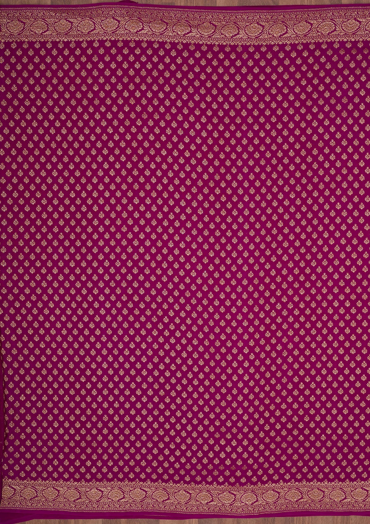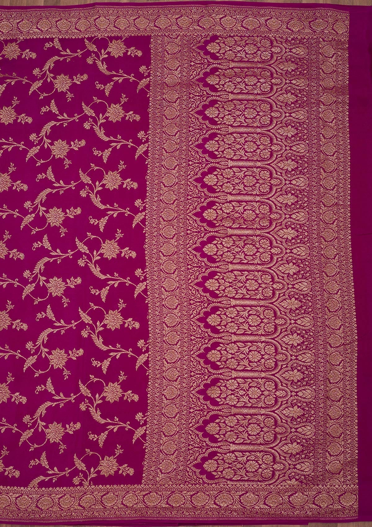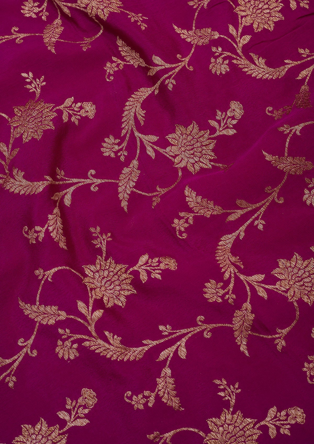 Magenta Pink Zariwork Pure Crepe Silk Saree