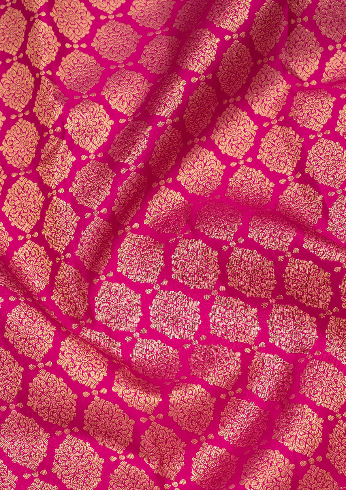 Magenta Pink Silk Saree in Pure Silk fabric. The Silk Saree is elevated with Zariwork embroidery. It comes with an Unstitched blouse. Comes with the Koskii promise of premium quality.