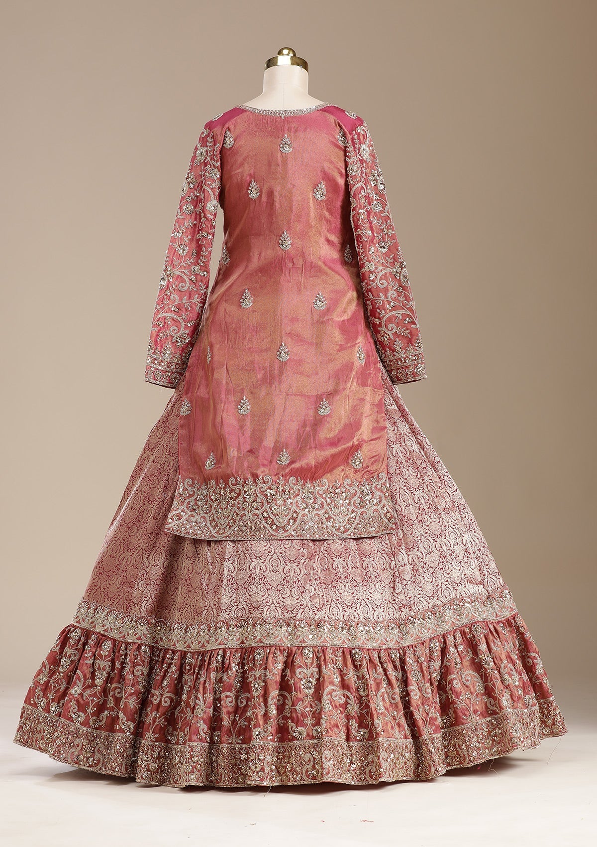Maroon Readymade Lehenga in Brocade fabric. The Lehenga is embellished with Cording embroidery. Accompanied with an Readymade blouse and dupatta. Comes with the Koskii promise of premium quality.