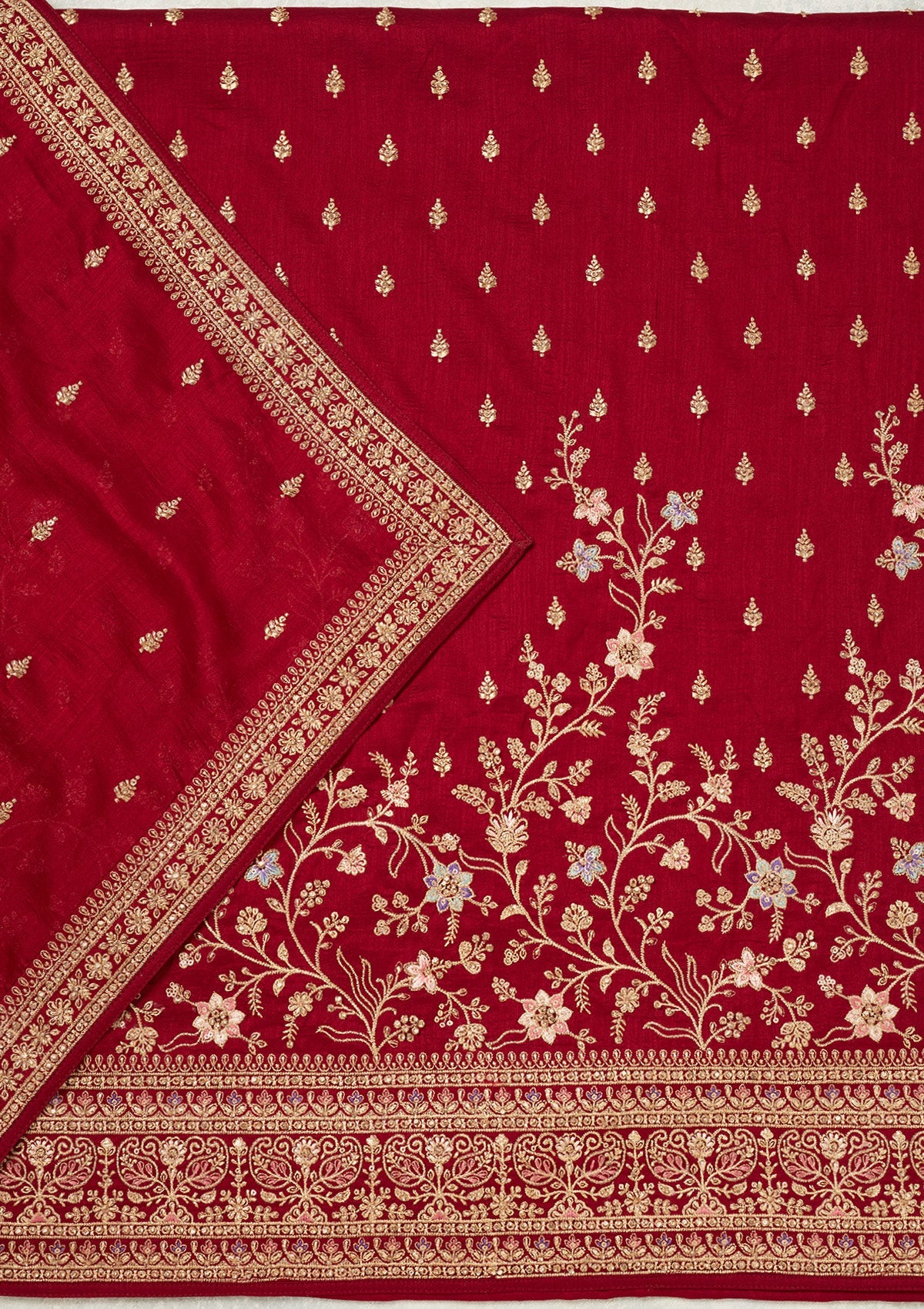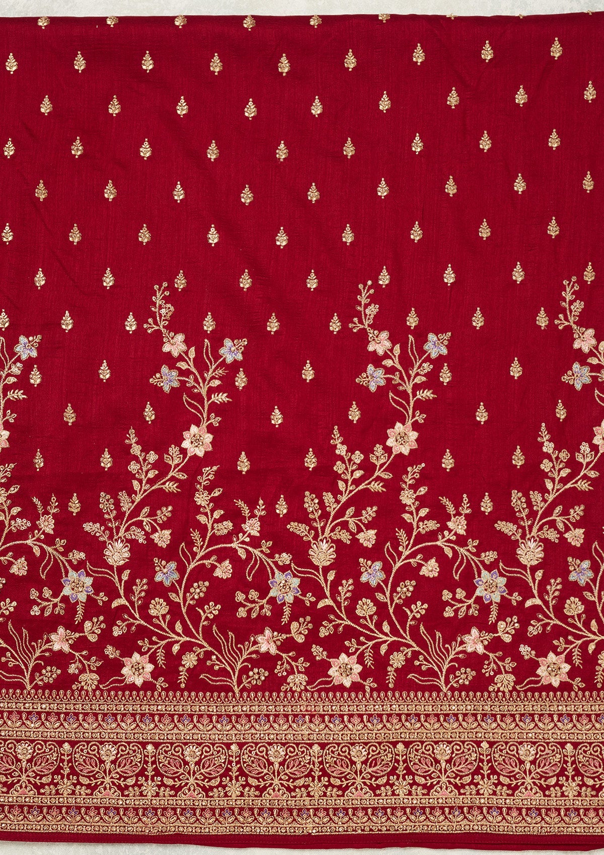 Maroon Cording Soft Raw Silk Unstitched Salwar Suit