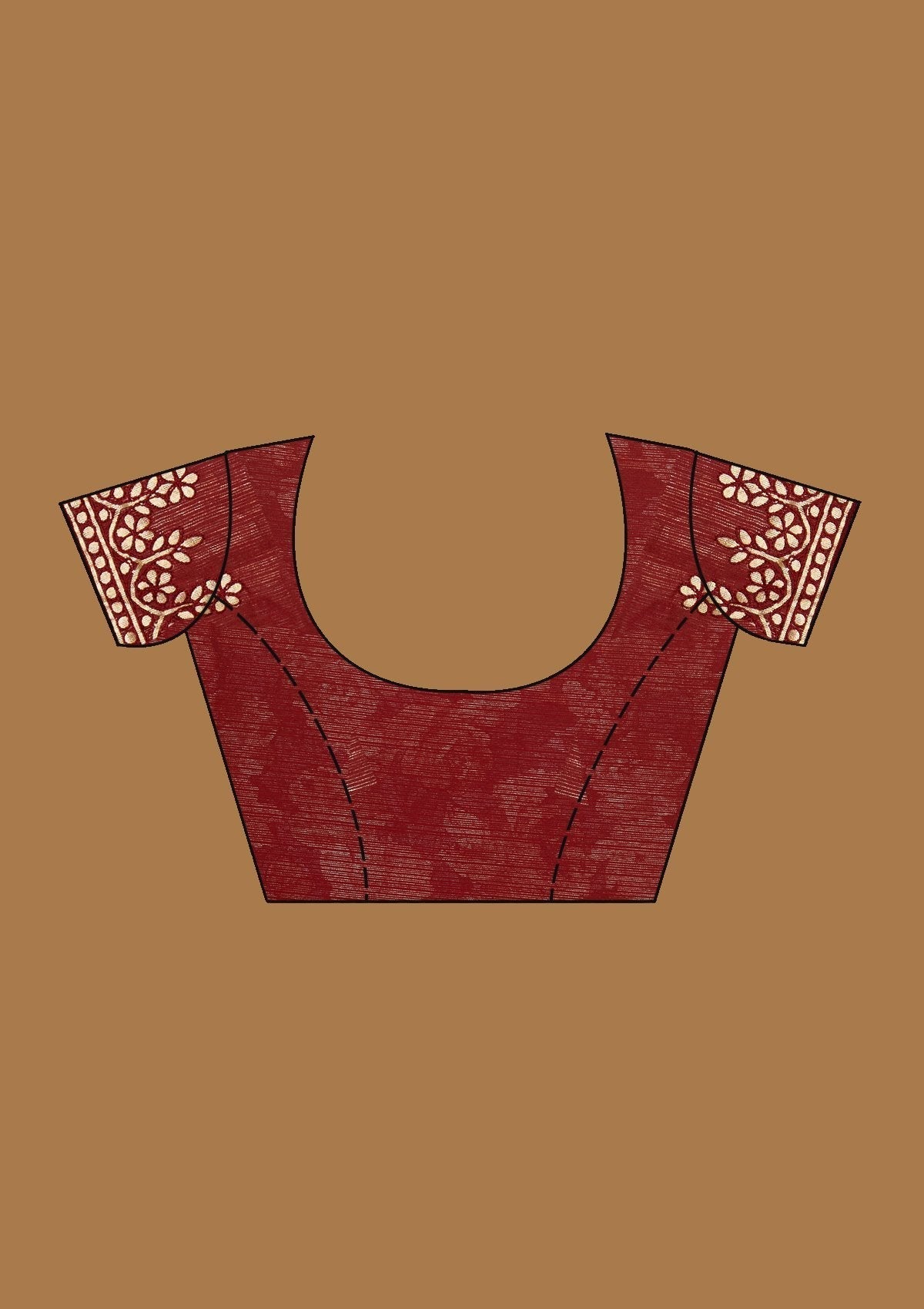 Maroon Saree In Semi Crepe. The Saree Is Embellished With Gotapatti Embroidery. Paired With A Matching Unstitched Blouse. Comes With The Koskii Promise Of Superior Quality.