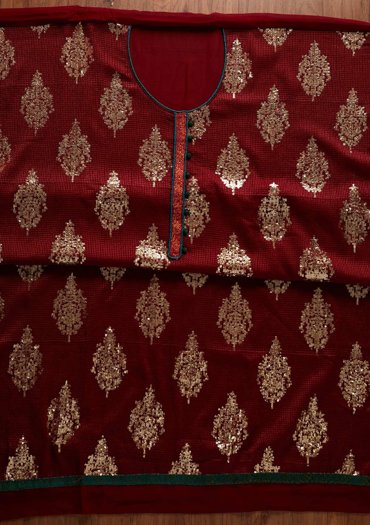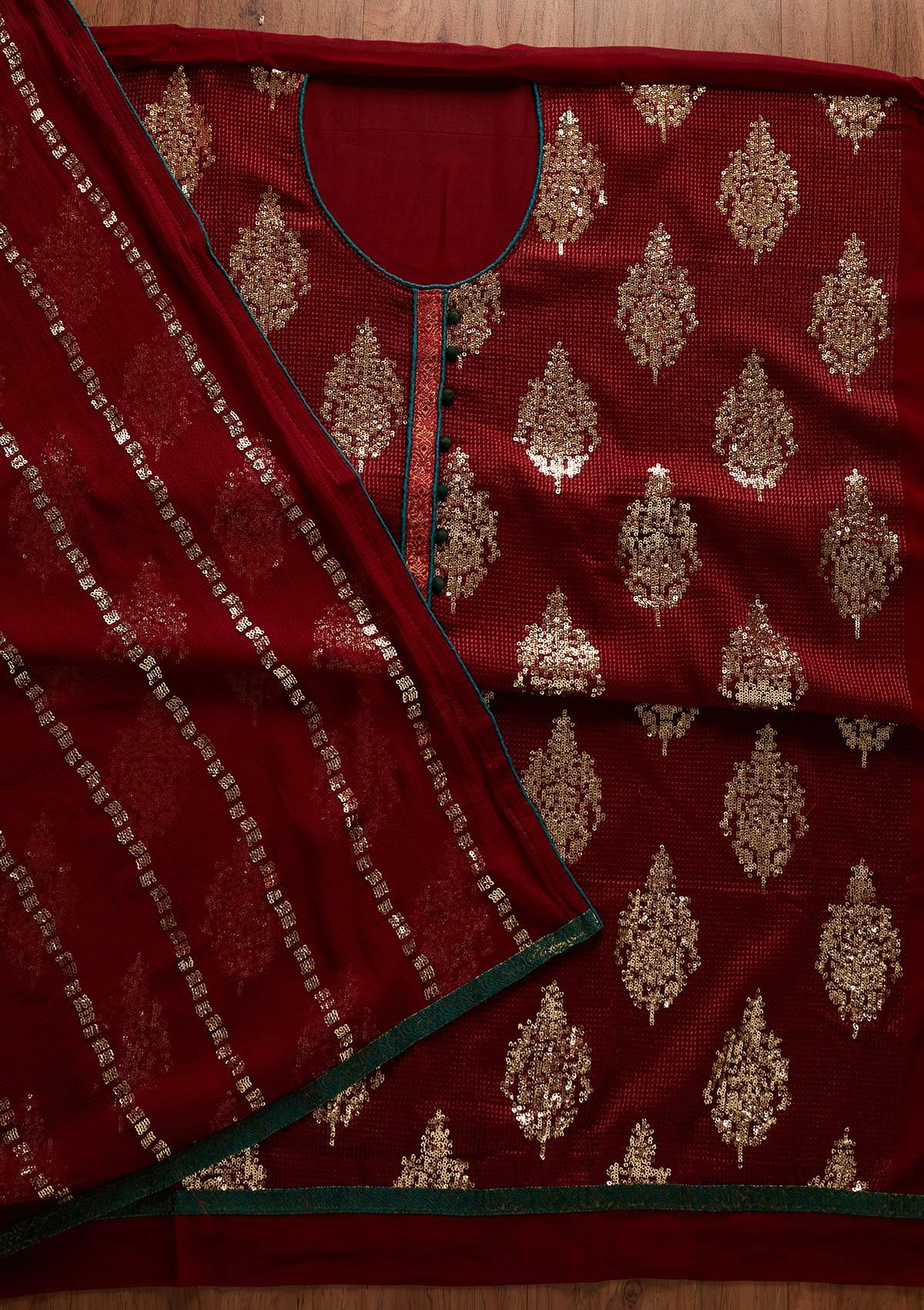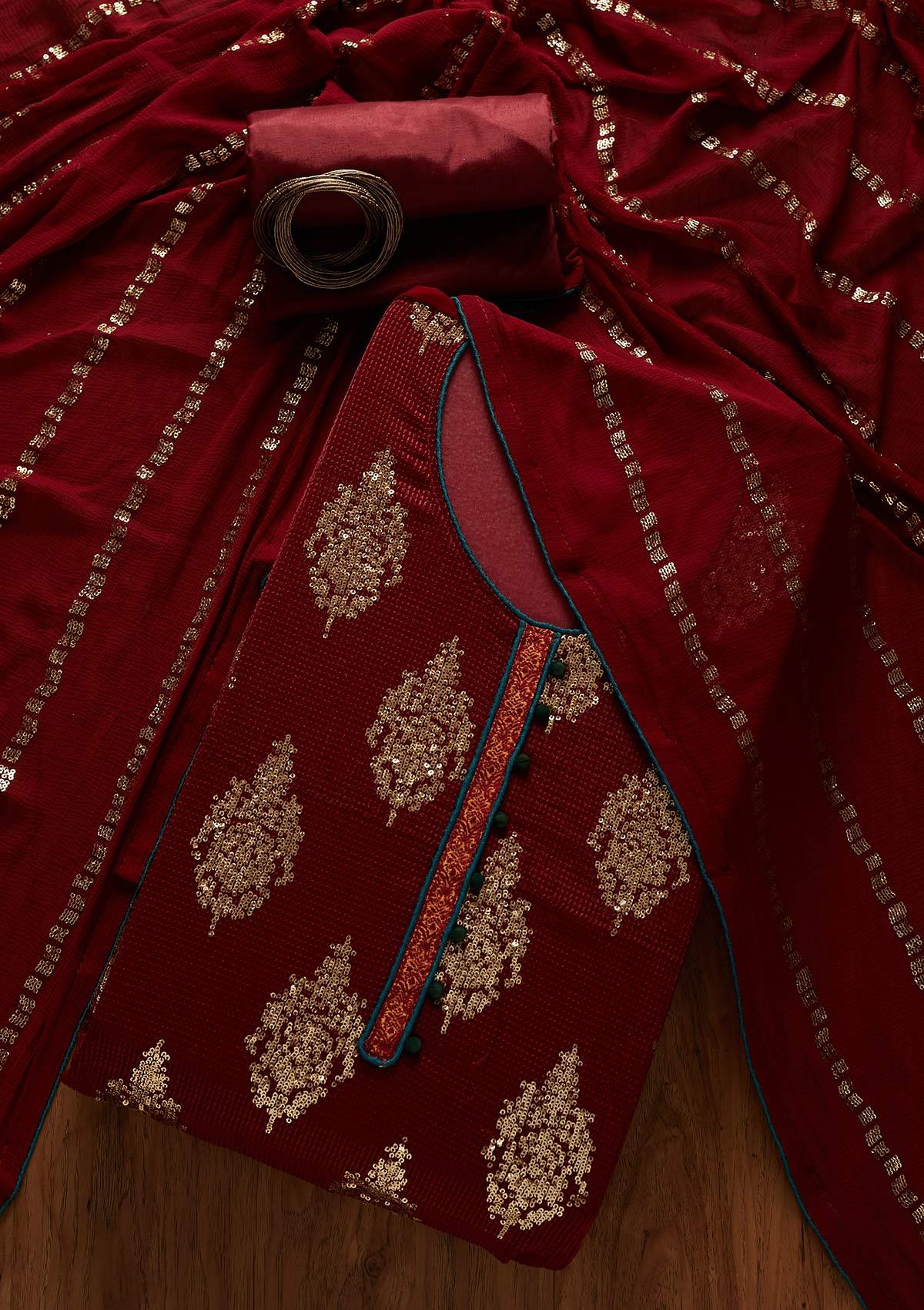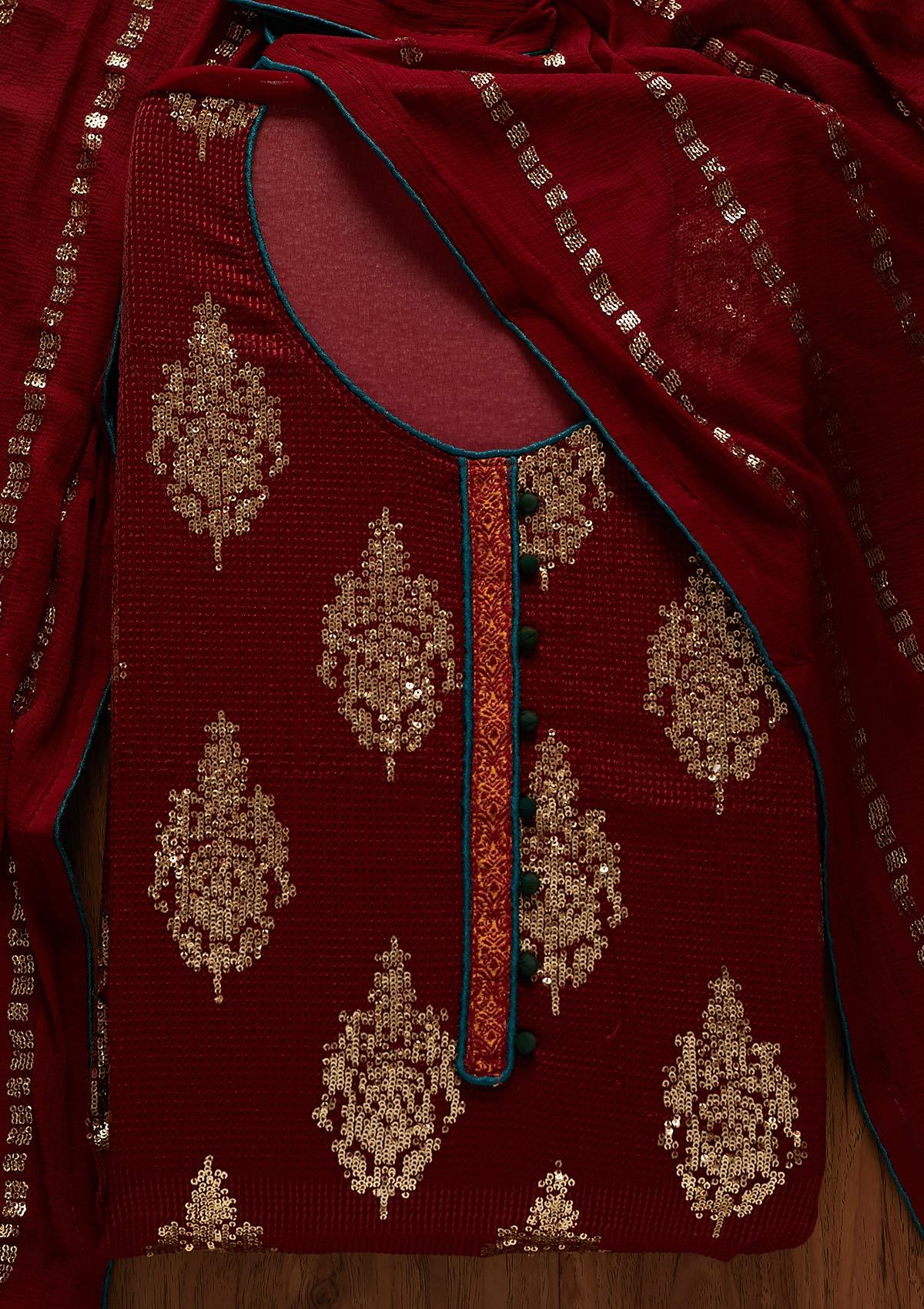 Maroon Sequins Georgette Unstitched Salwar Suit